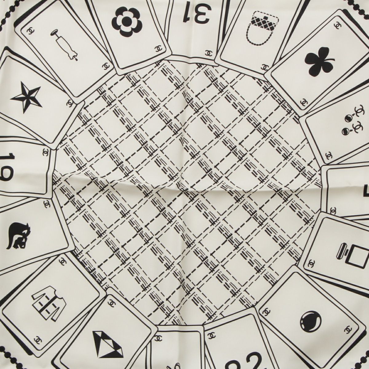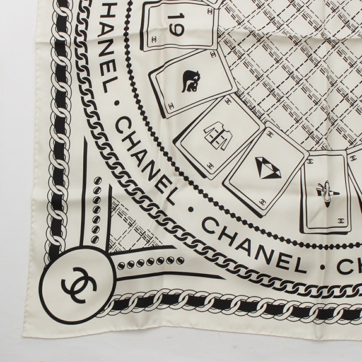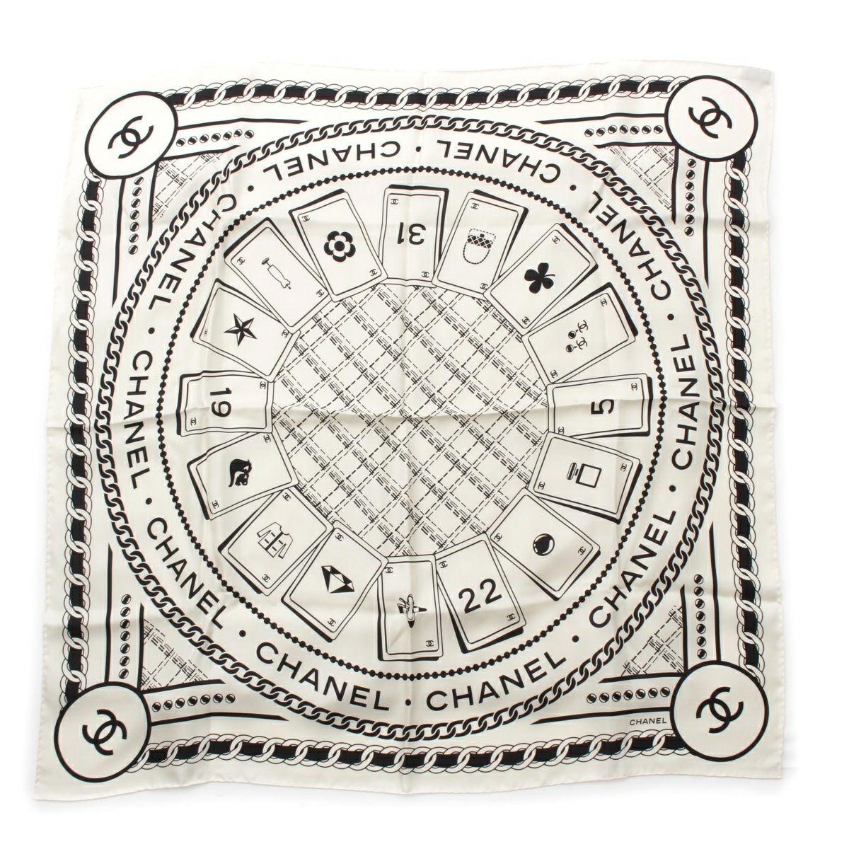 シャネル 24P シルク ココマーク トランプ カードゲーム スカーフ AA9906B ホワイト