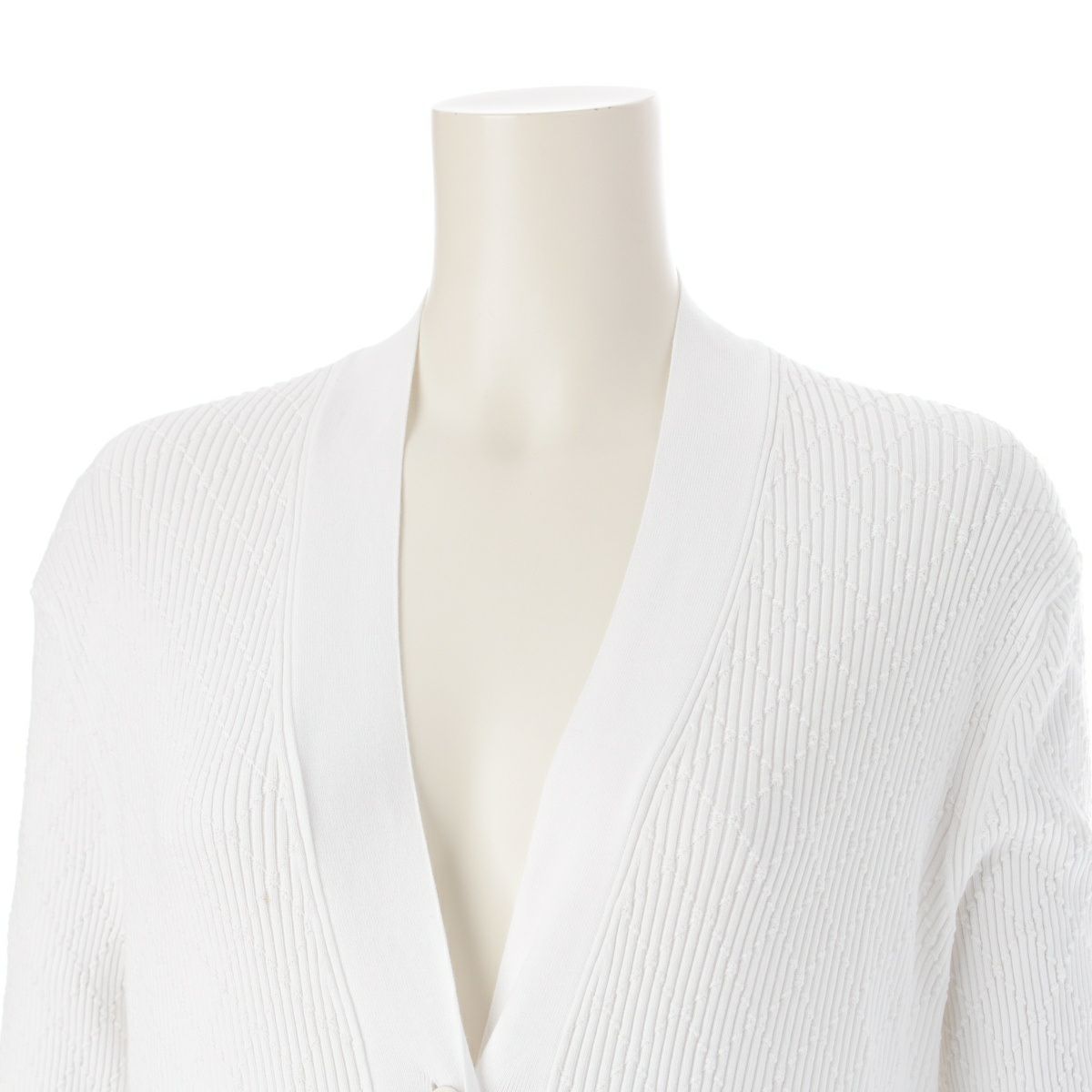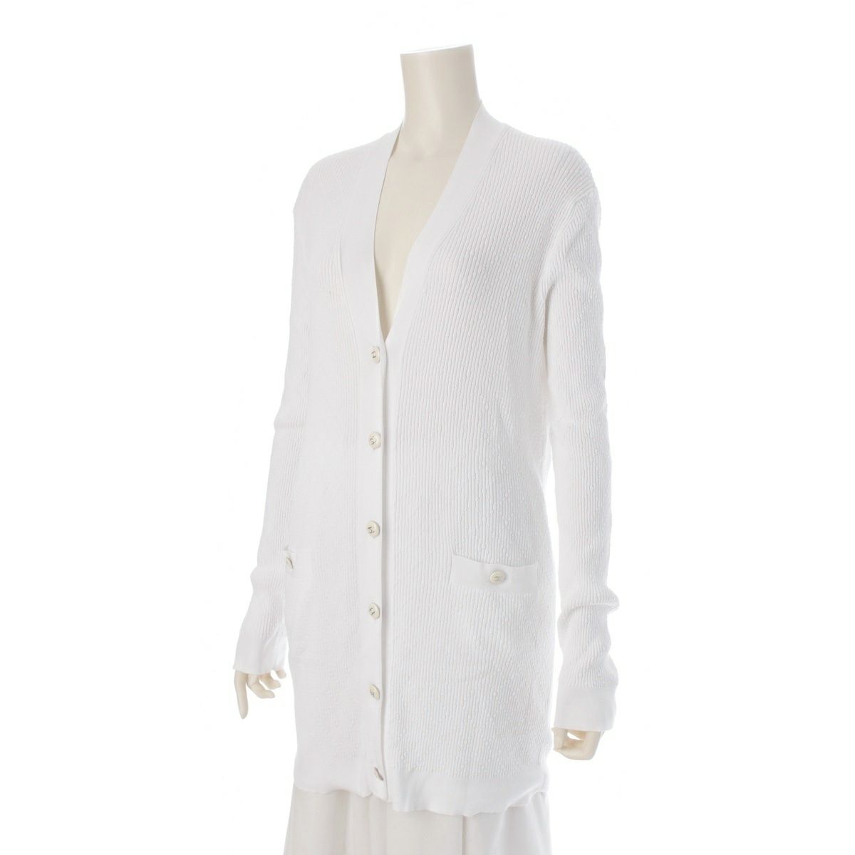 シャネル マトラッセ モチーフ ココマークボタン 長袖 ニット カーディガン P45654 ホワイト 42