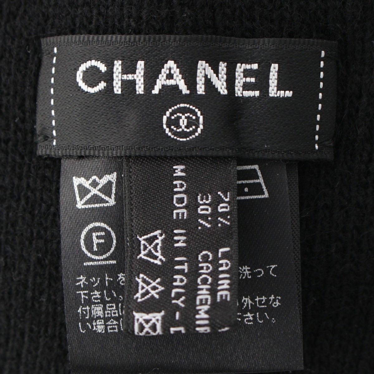 シャネル カシミヤ混 ロゴ ニットキャップ ビーニー 帽子 ブラック ピンク