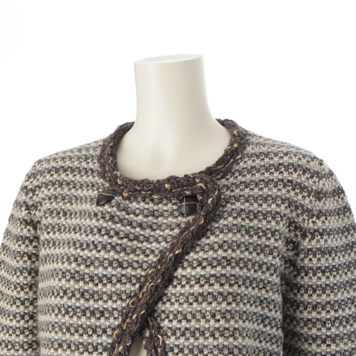 シャネル 07A カシミヤ ウール ツイード ニット ノーカラージャケット カーディガン P31827 ブラウン 40