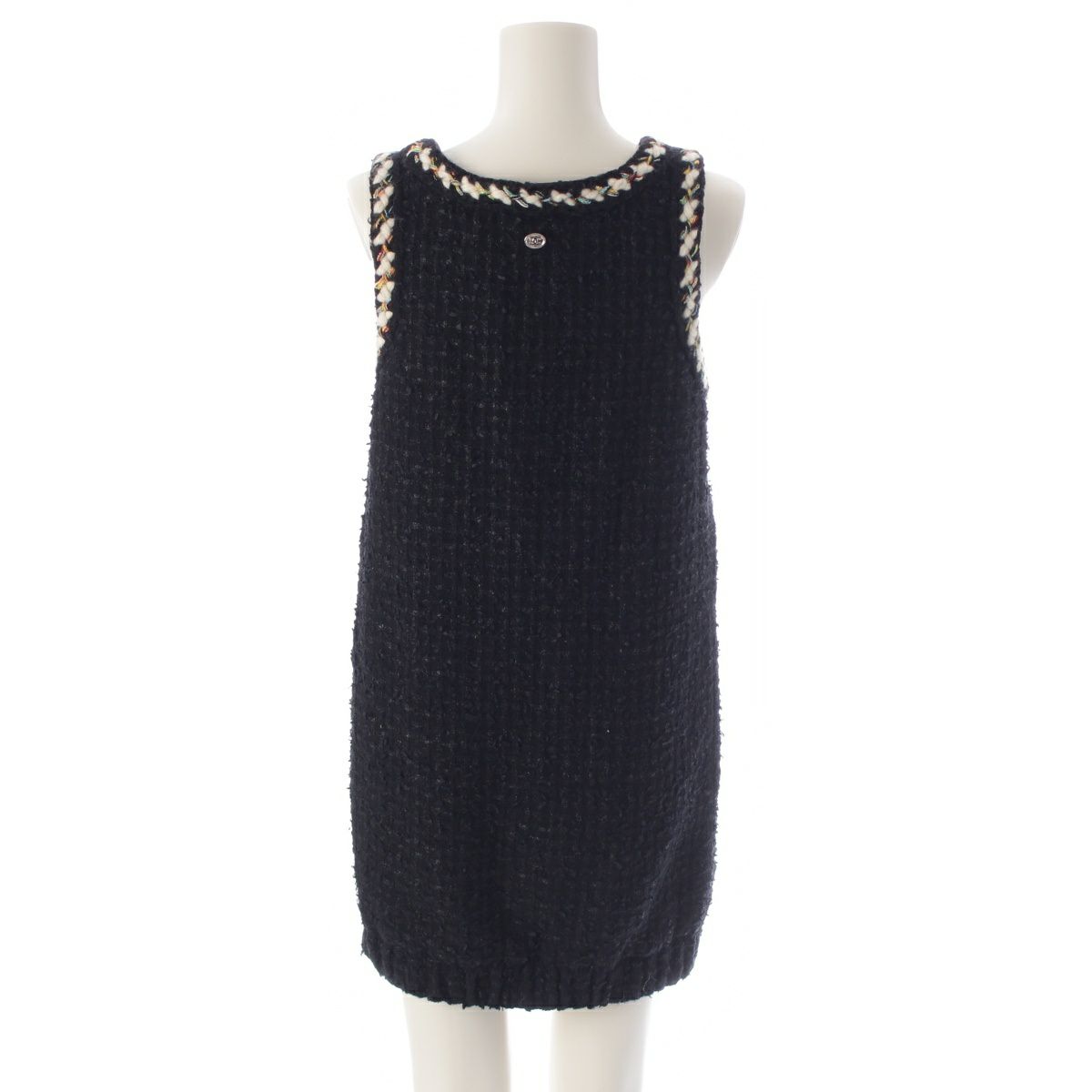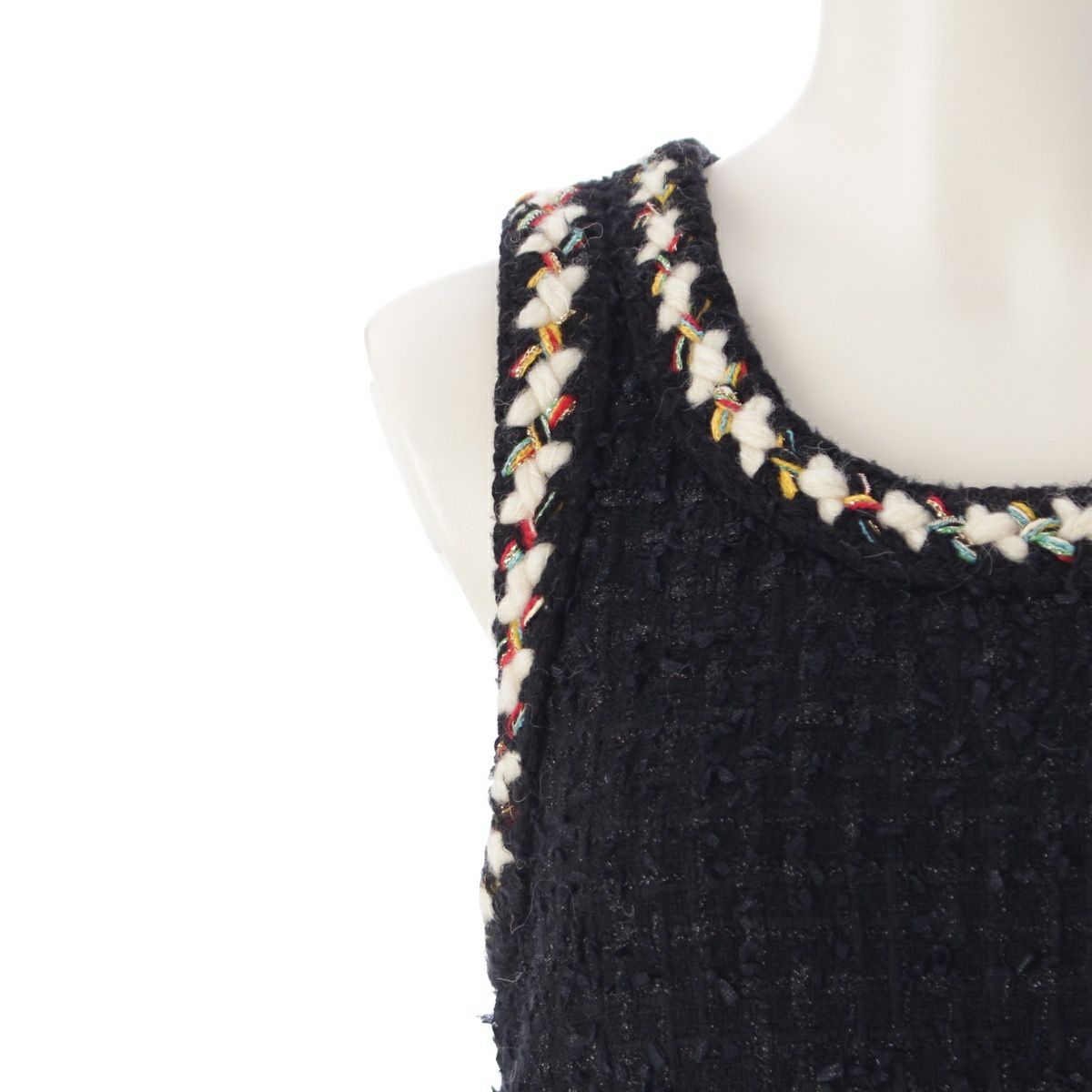 シャネル 22‐23年 メティエダール ツイード ノースリーブ ワンピース ドレス P75267 ブラック×イエロー 34