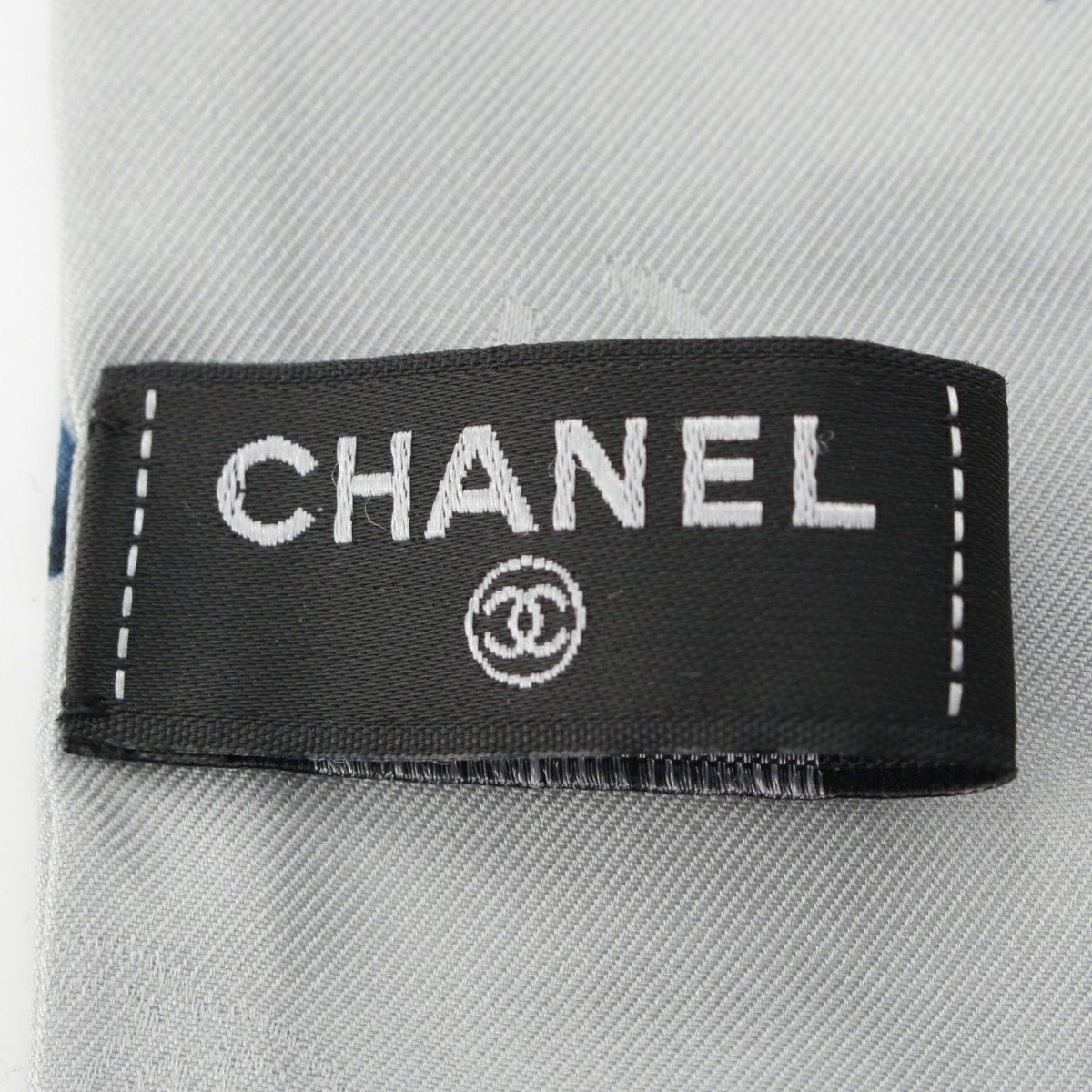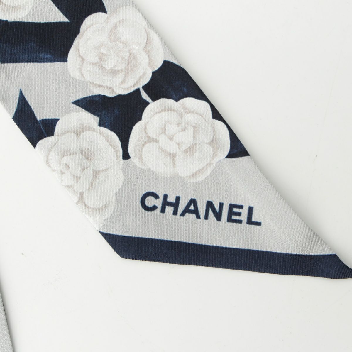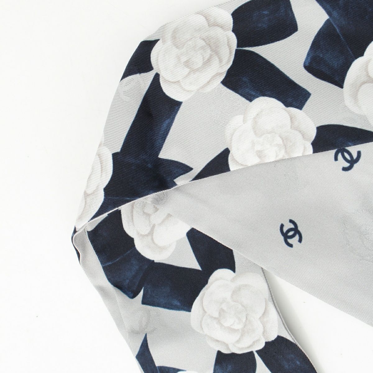 シャネル 25A ツイル シルク カメリア リボン スカーフ ヘアバンド グレー