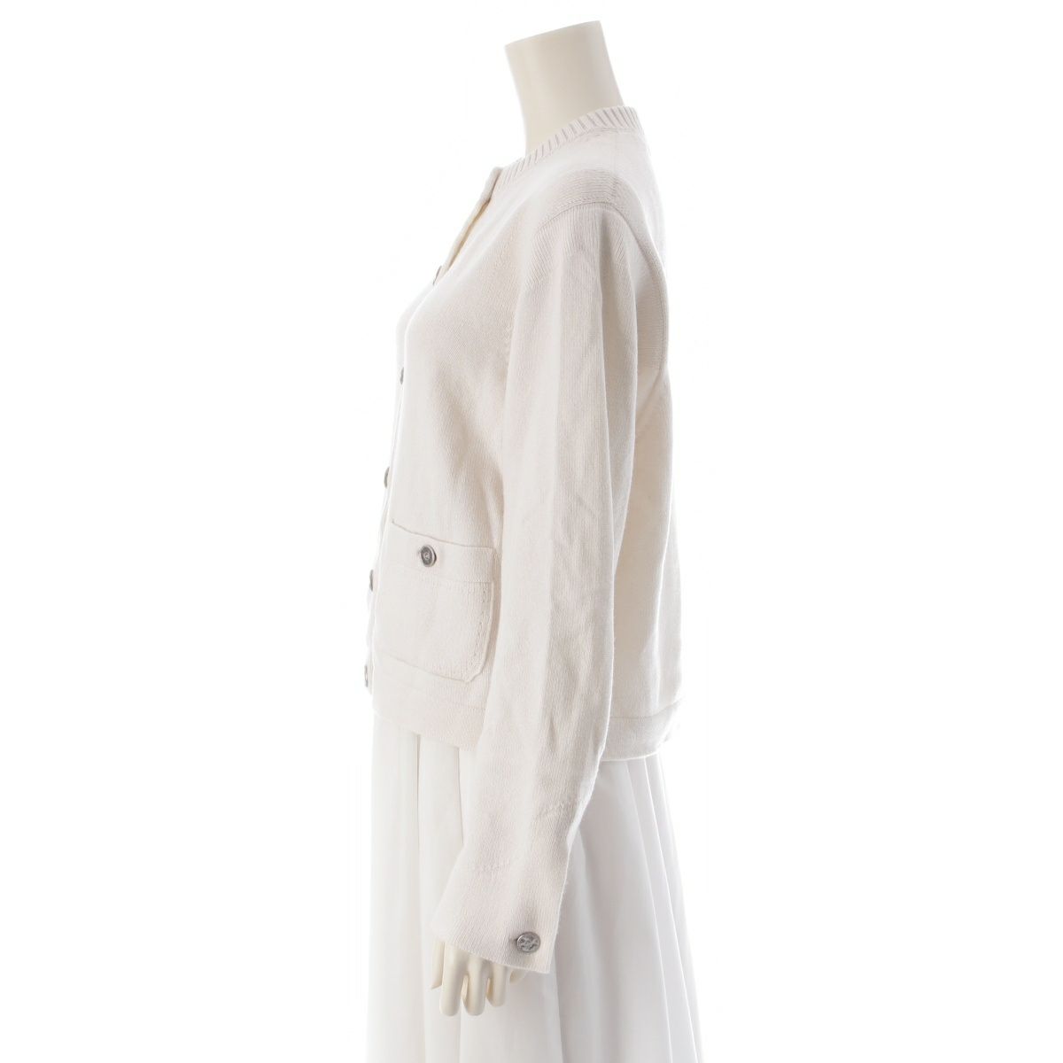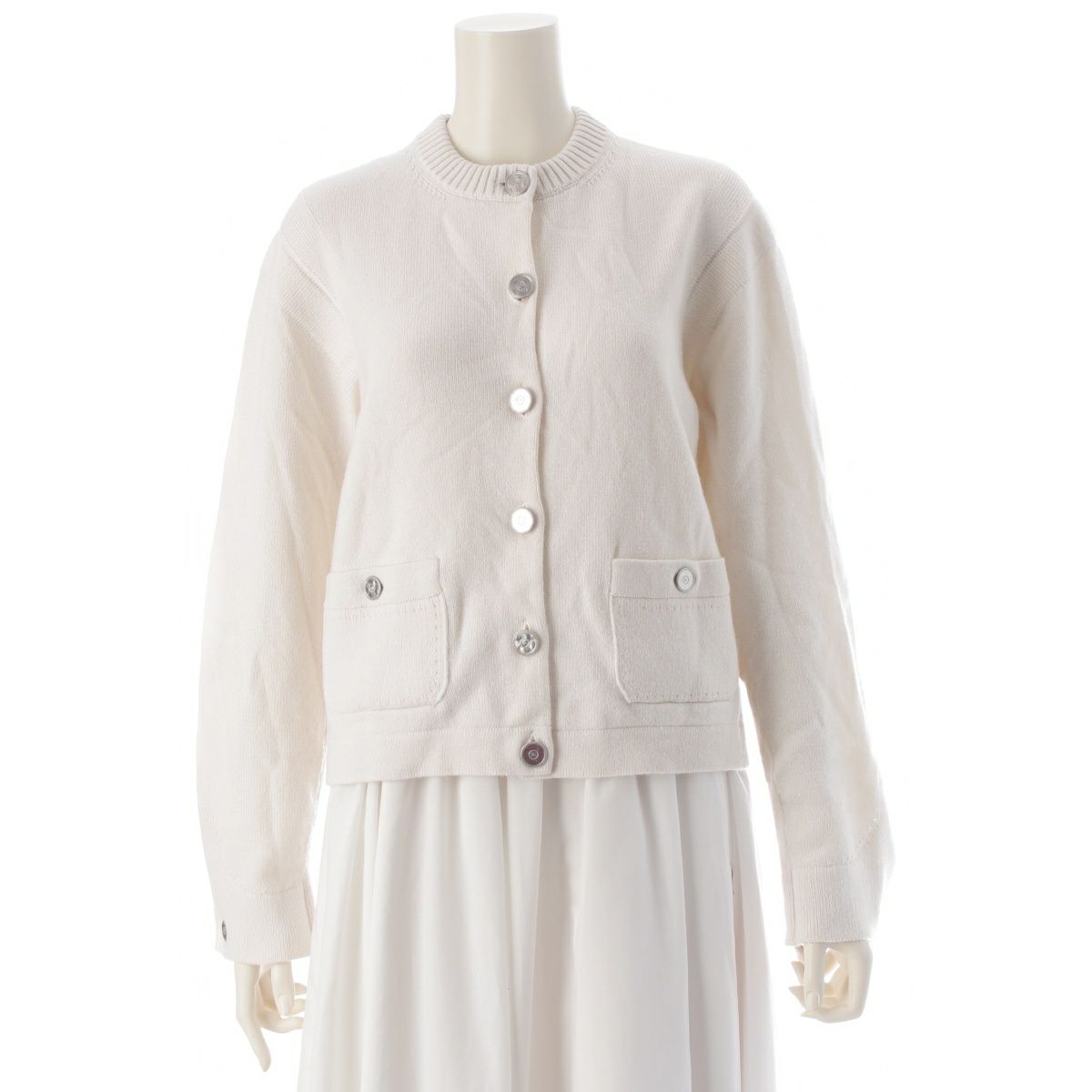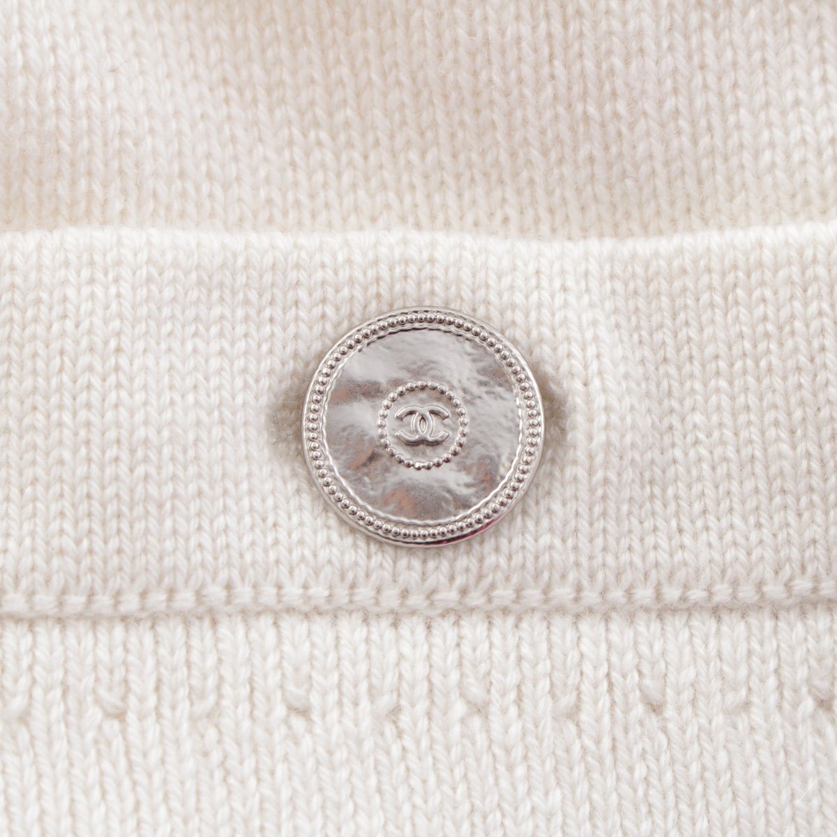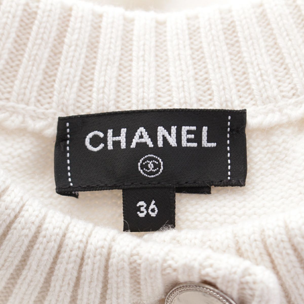 シャネル 25P カシミヤ ココボタン ノーカラー カーディガン P79166 アイボリー 36