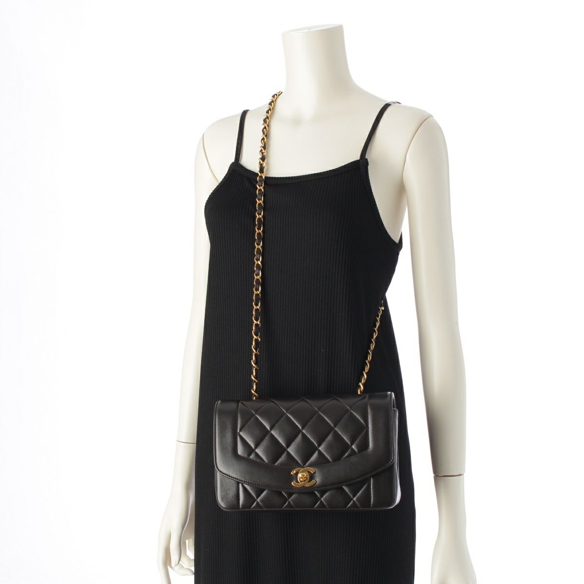 シャネル ダイアナ22 レザー ココマーク マトラッセ チェーン ショルダーバッグ ブラック