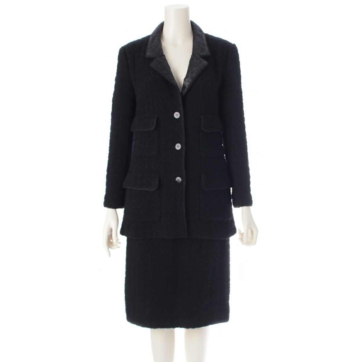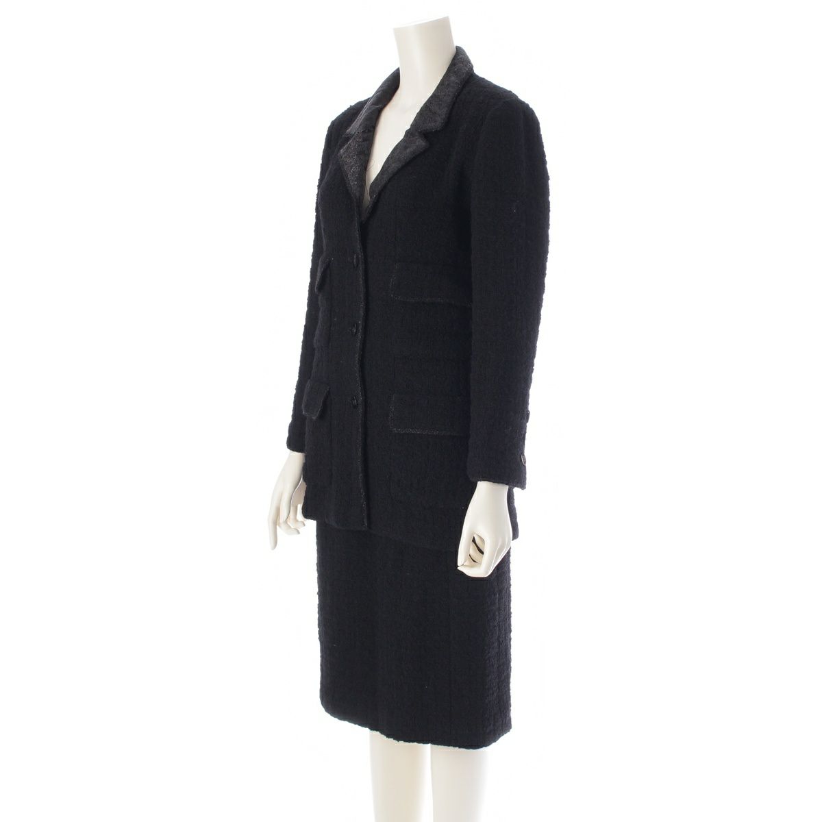 シャネル 98A ウール 4ポケット ツイード ジャケット スカートセットアップ P11491 ブラック 38