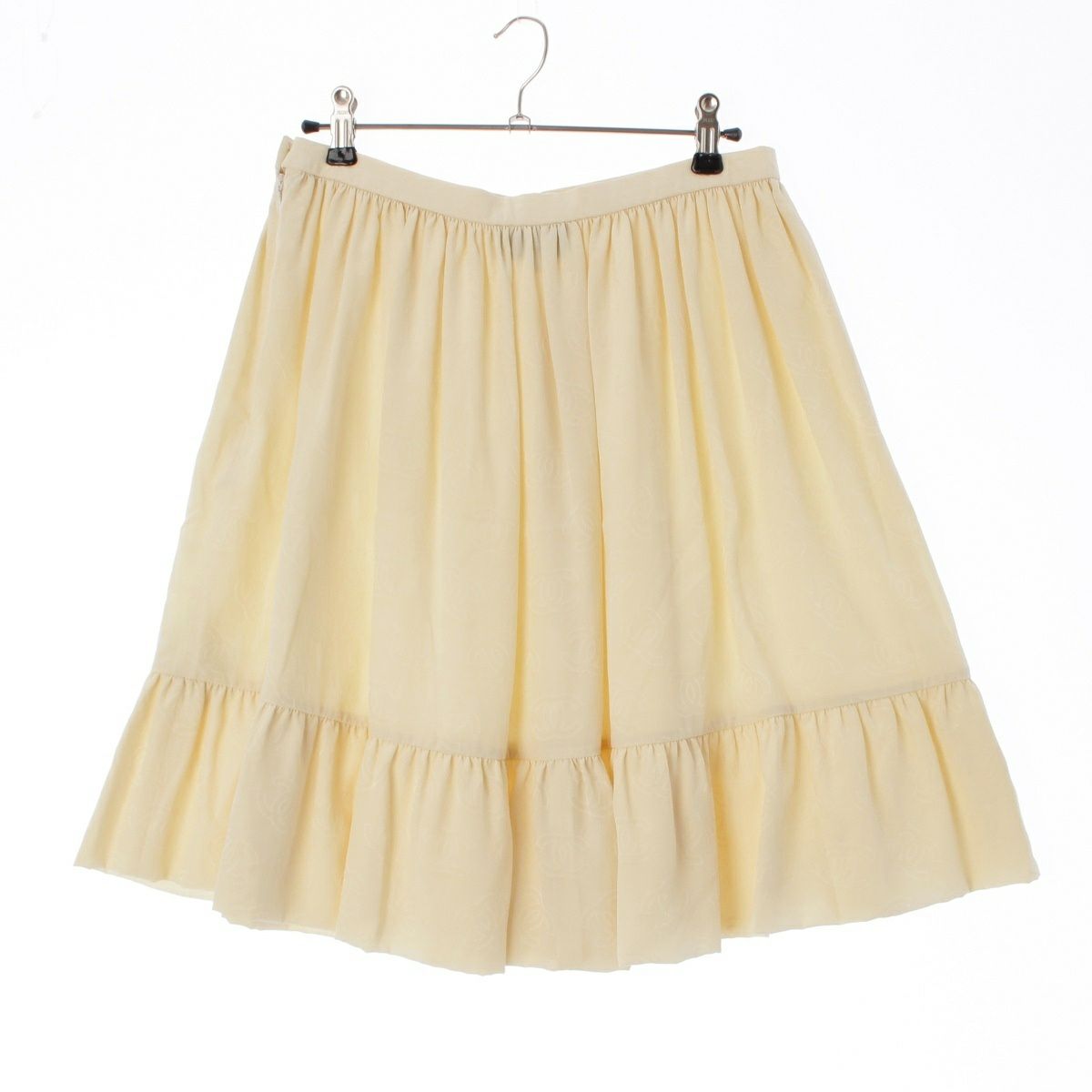 シャネル 23年 シルク ココマーク フレア スカート P74787 ホワイト 38
