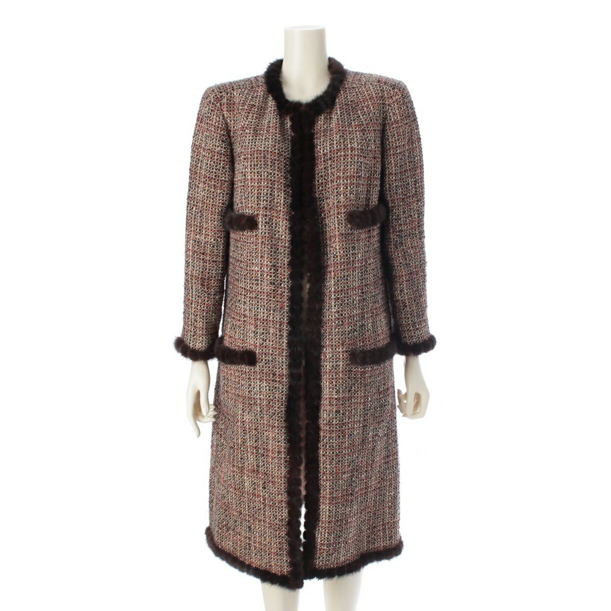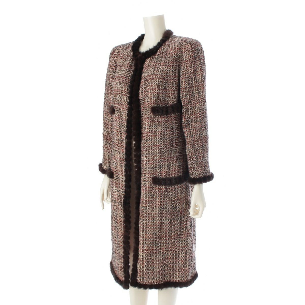 シャネル 03A ツイード ファー トリム ノーカラーコート アウター P21803 ブラウン 44