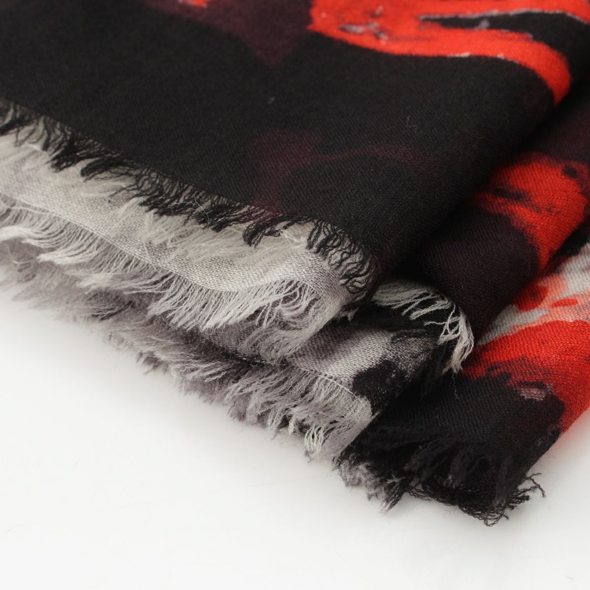 シャネル カシミヤ ロゴ 大判 スカーフ ストール ブラック×レッド
