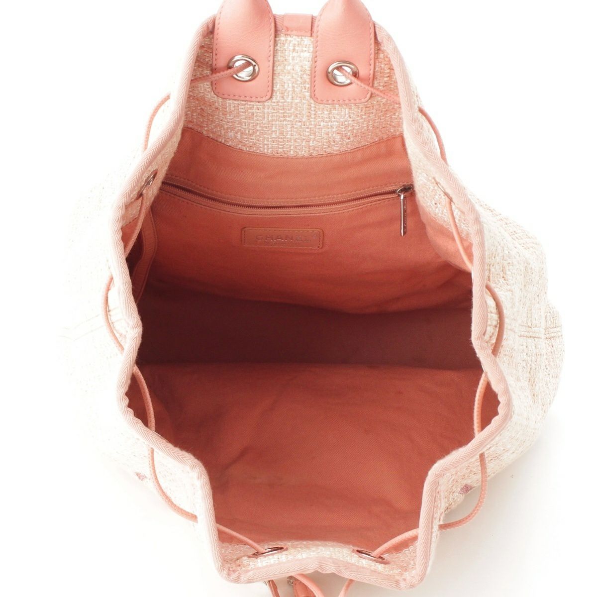 シャネル ドーヴィル ツイード ロゴ レザー チェーン リュック デイパック バッグ ピンク