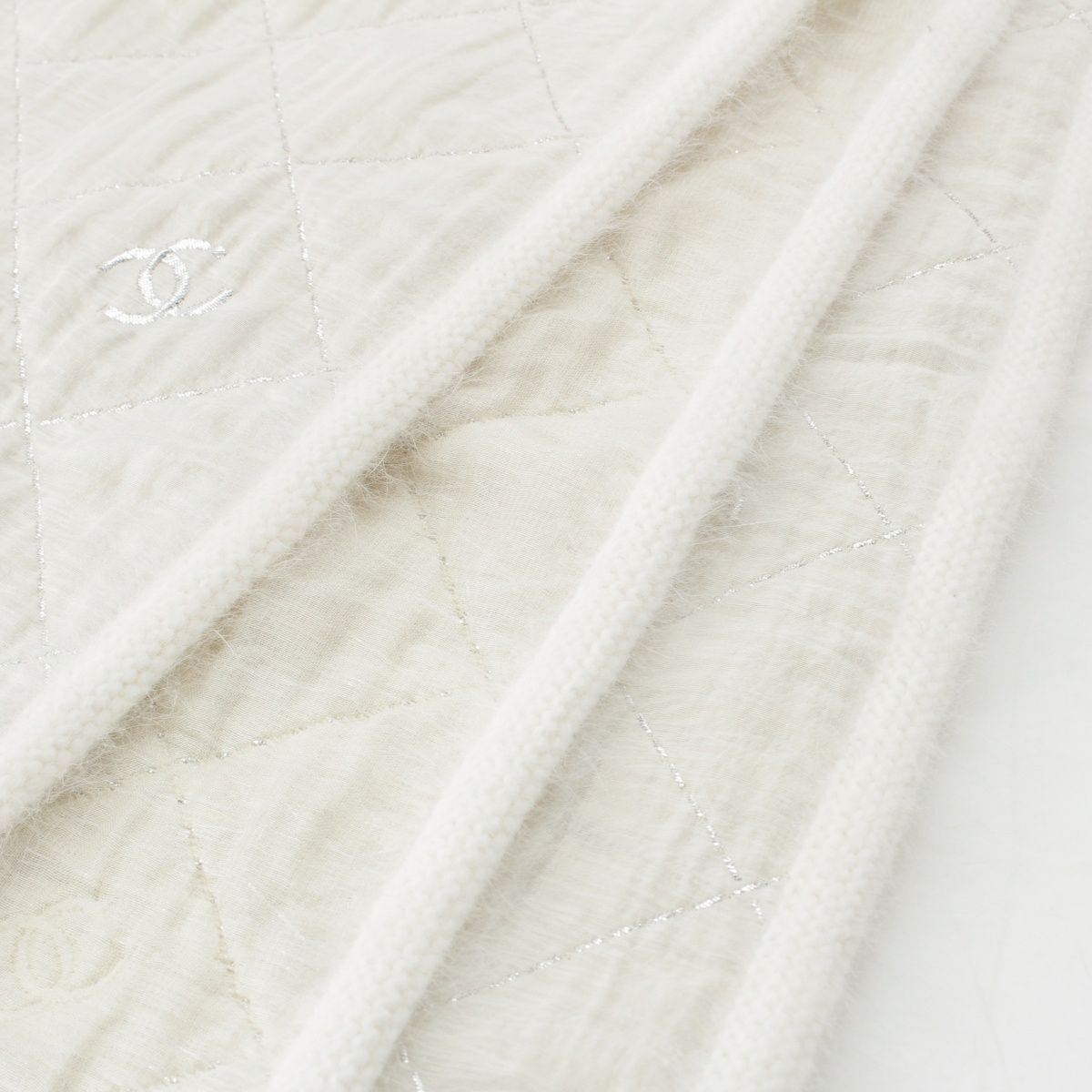 シャネル ウール シルク アンゴラ カシミヤ ココマーク マトラッセ ラメ マフラー ホワイト
