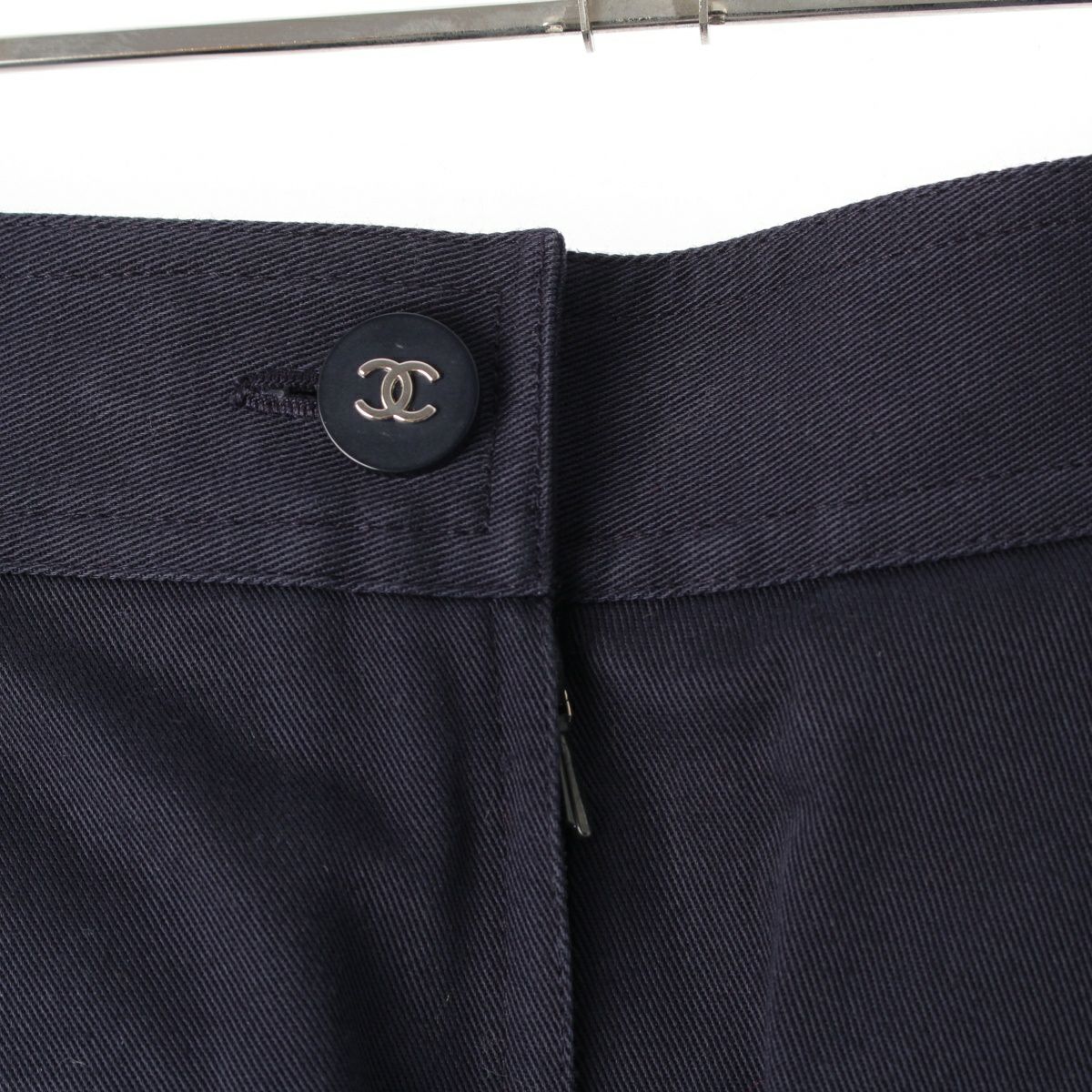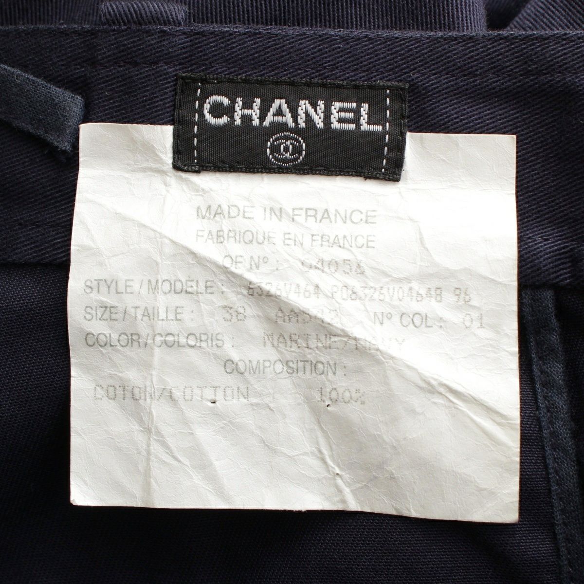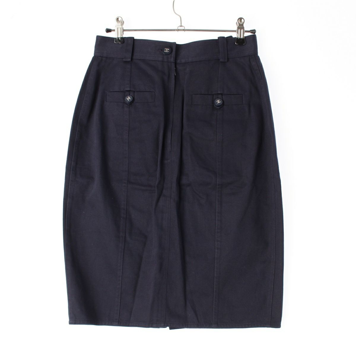 シャネル 90s コットン ココボタン 膝下丈 タイト スカート ネイビー 38