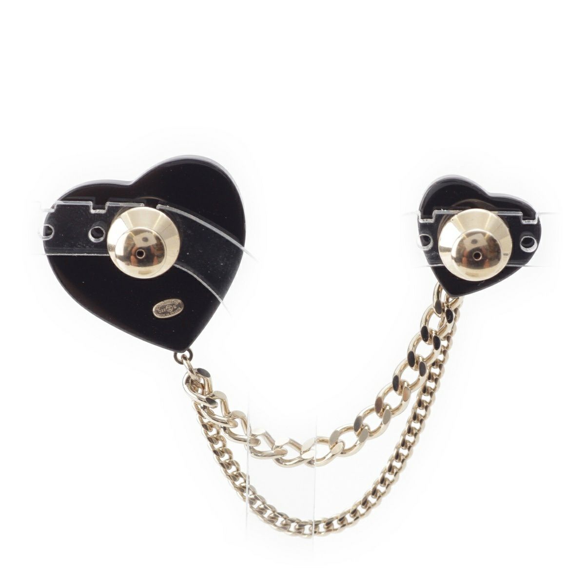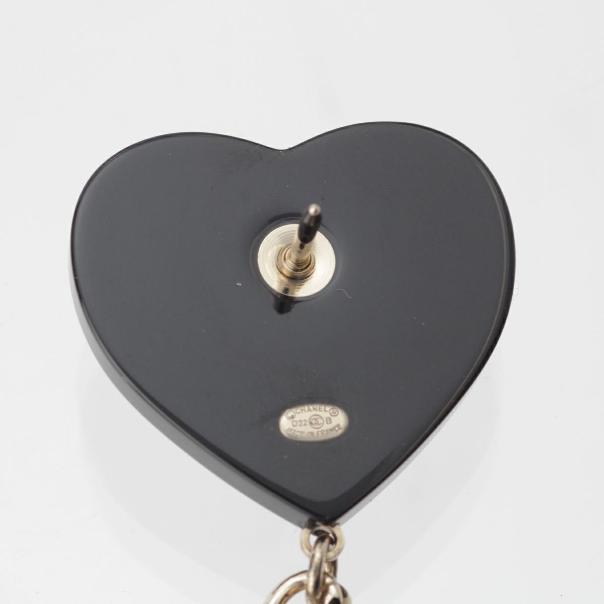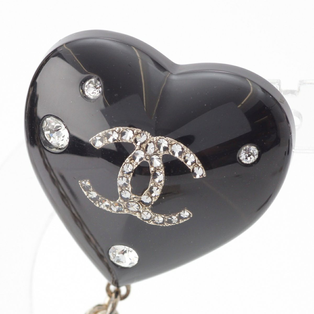 シャネル D22B ココマーク ハート ラインストーン チェーン ピン ブローチ アクセサリー ブラック