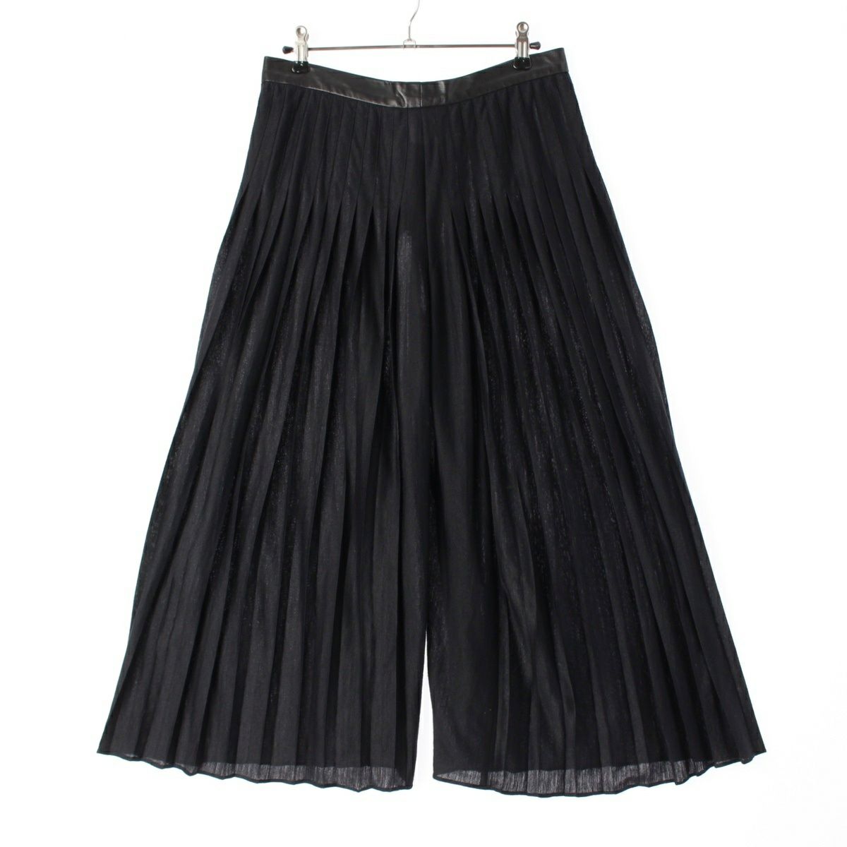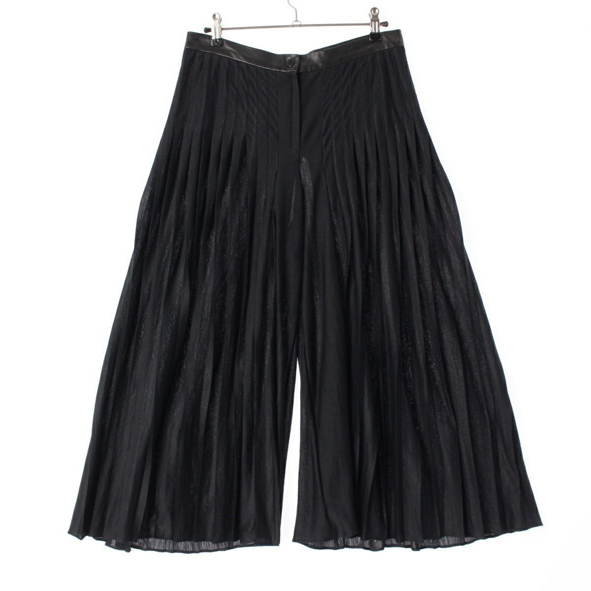 シャネル 06C ウール昆 ロゴボタン プリーツ スカンツ ワイド パンツ P27782 ブラック 36