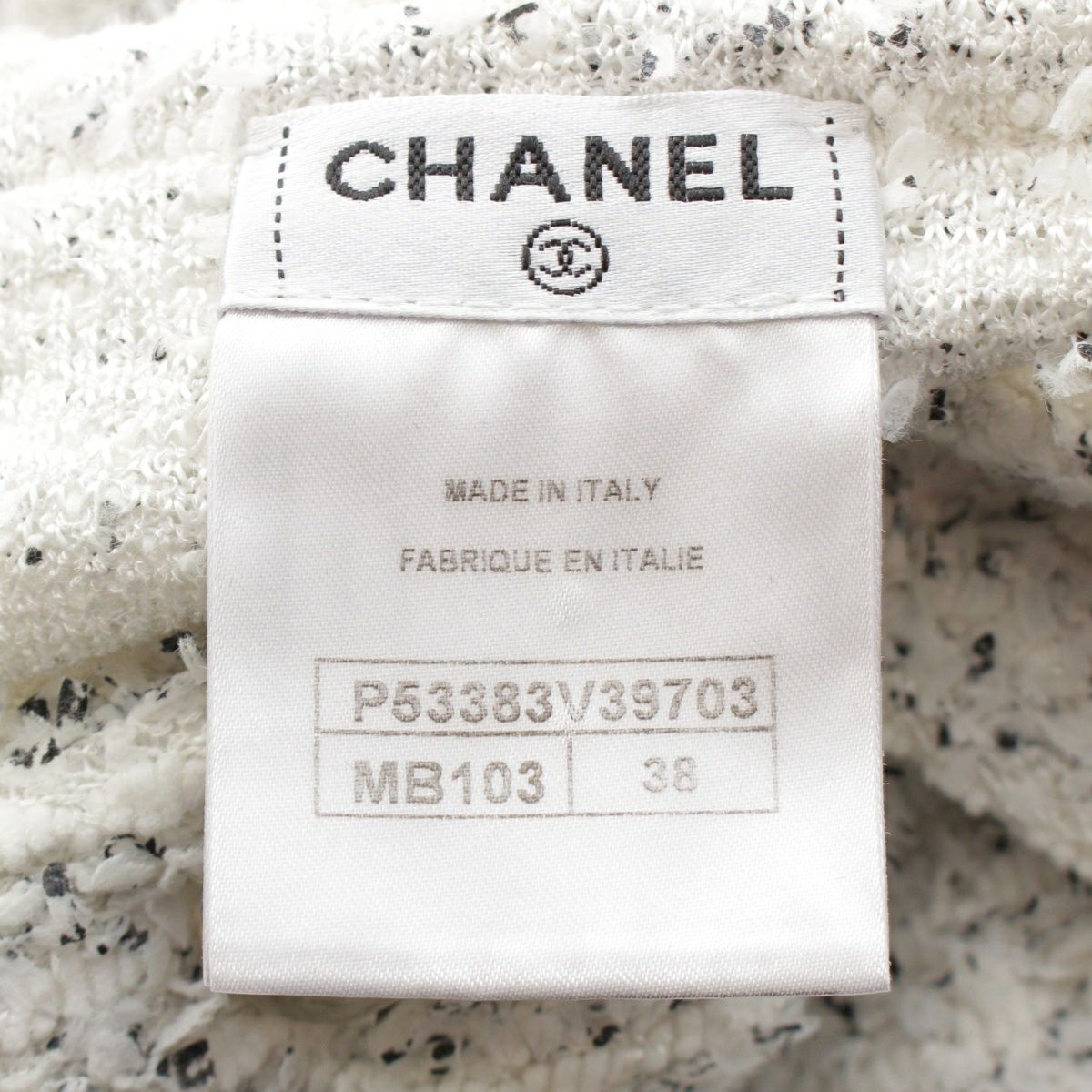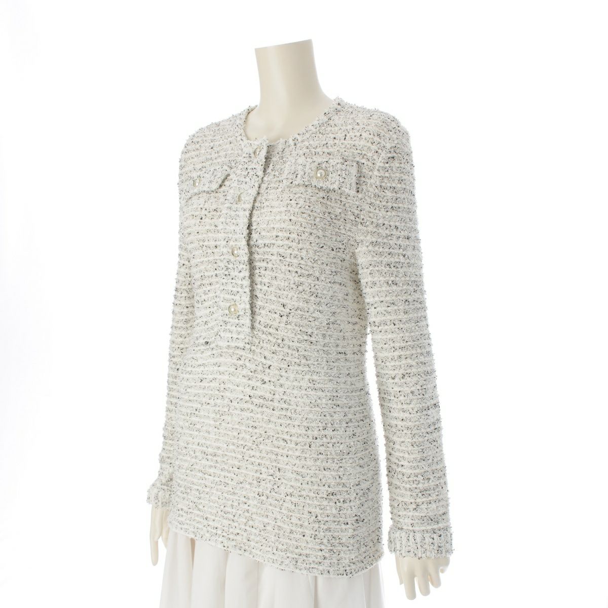 シャネル ココマーク ニット ツイード パール 長袖 チュニック トップス P53383 ホワイト 38