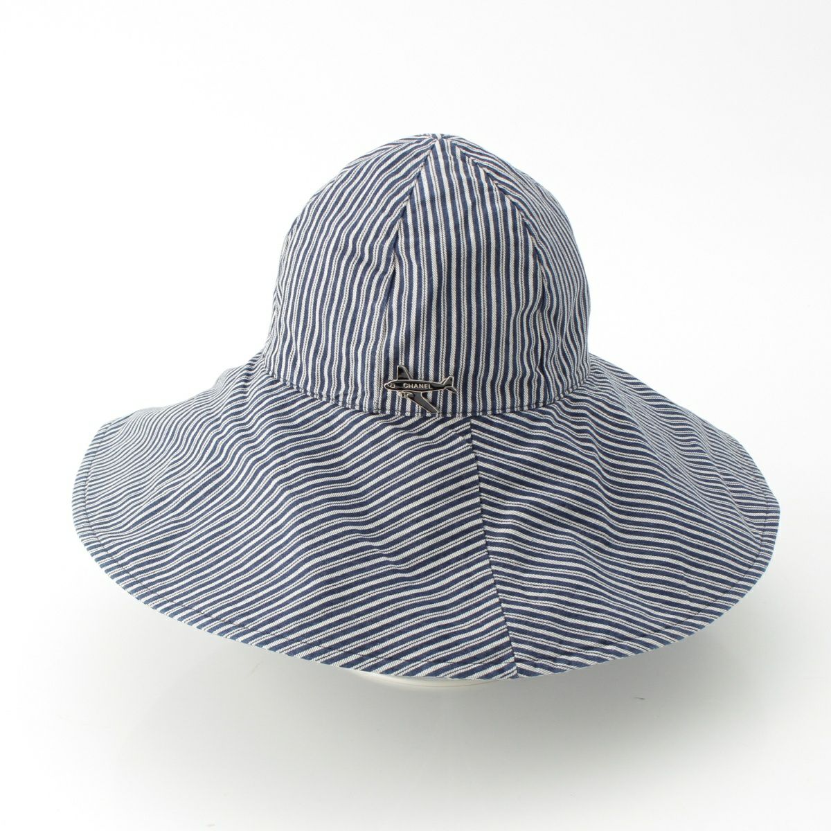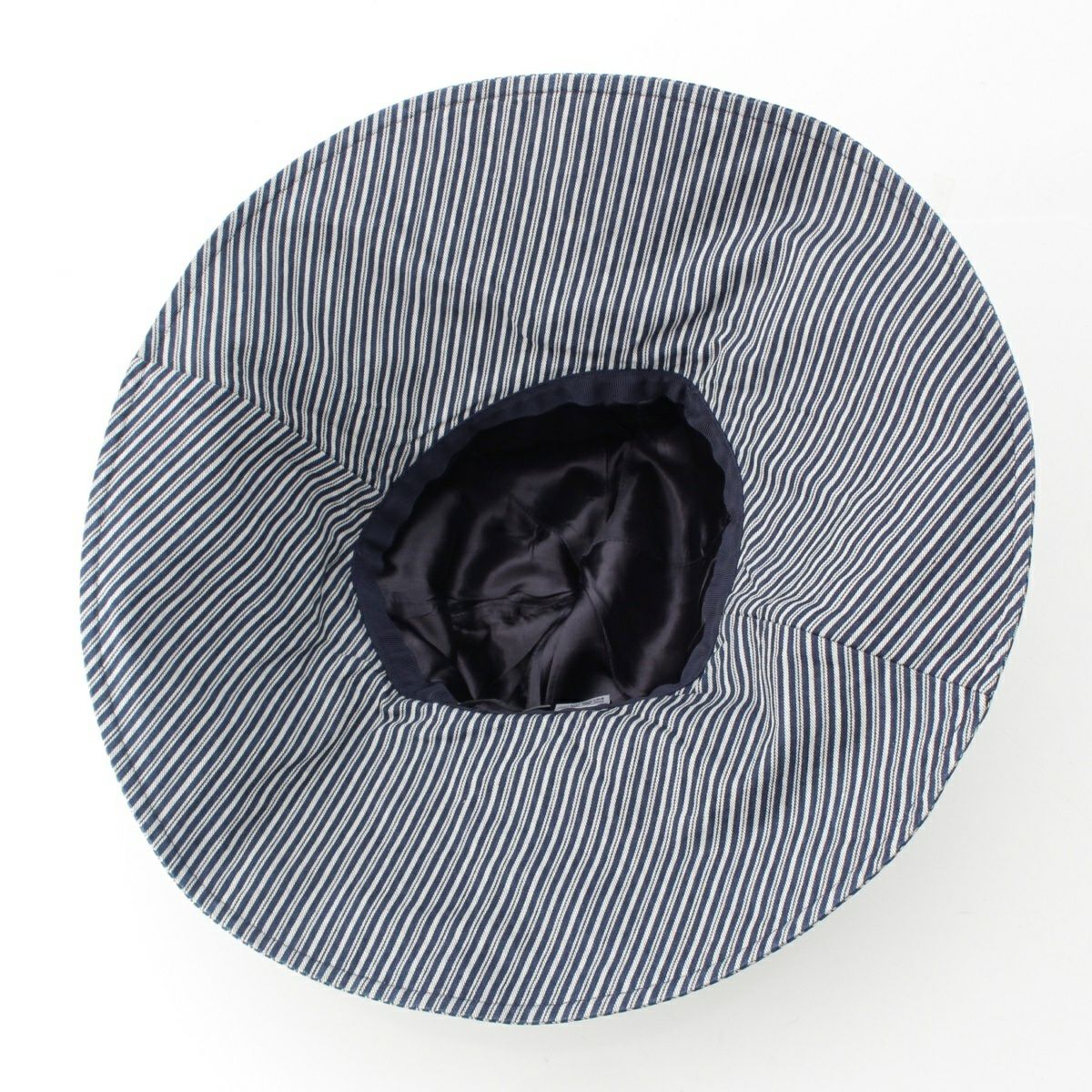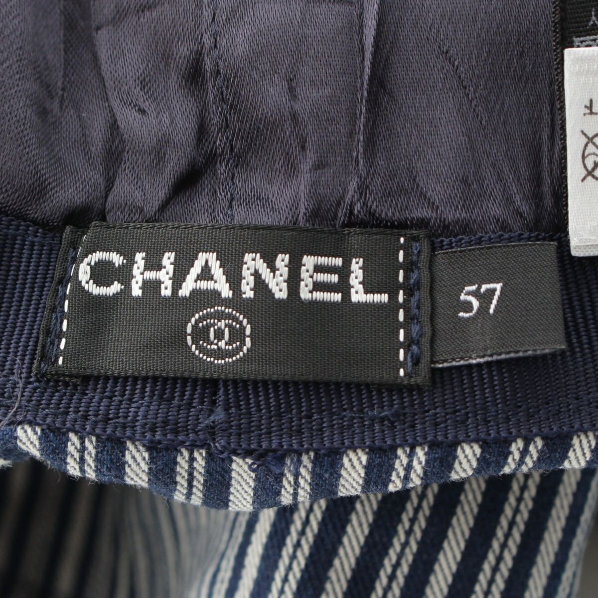 シャネル コットン 飛行機 ストライプ バケット ハット つば広帽子 ネイビー×ホワイト 57