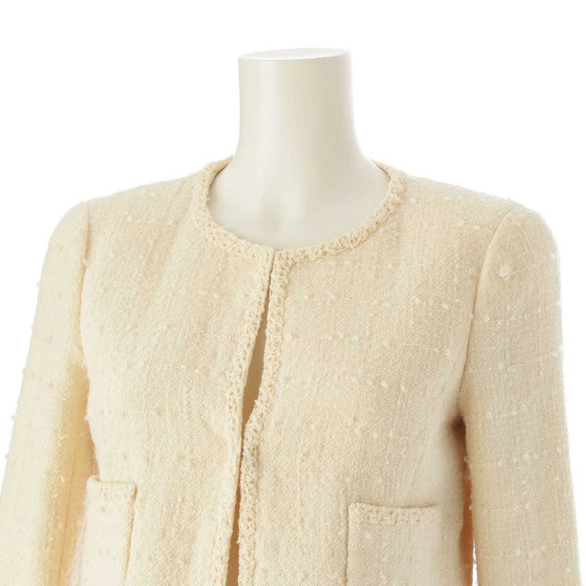 シャネル ウール ココマーク ツイード ノーカラージャケット アウター P36333 アイボリー 34