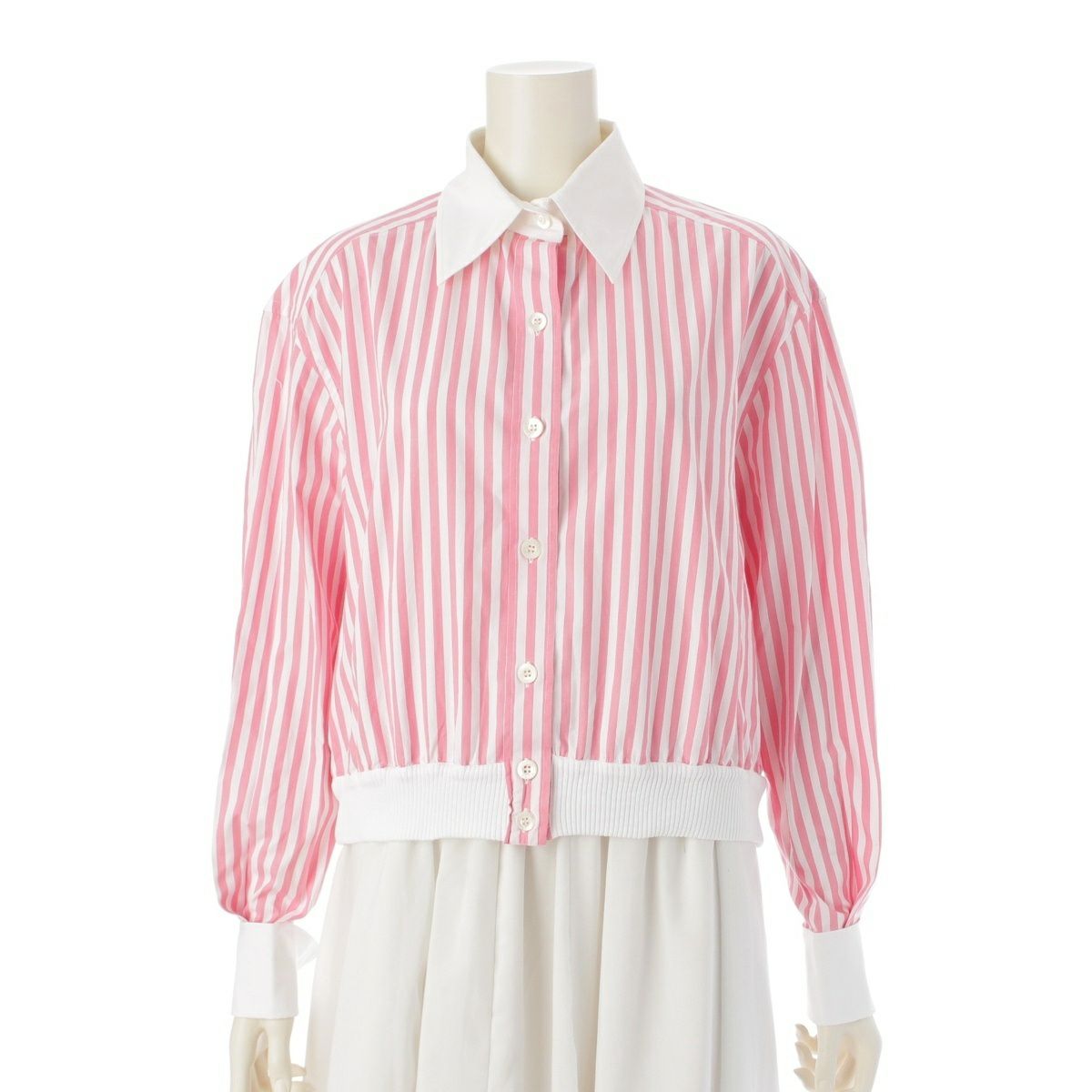 シャネル ココボタン クロップド ストライプ 柄 シャツ ブルゾン ジャケット ピンク ホワイト