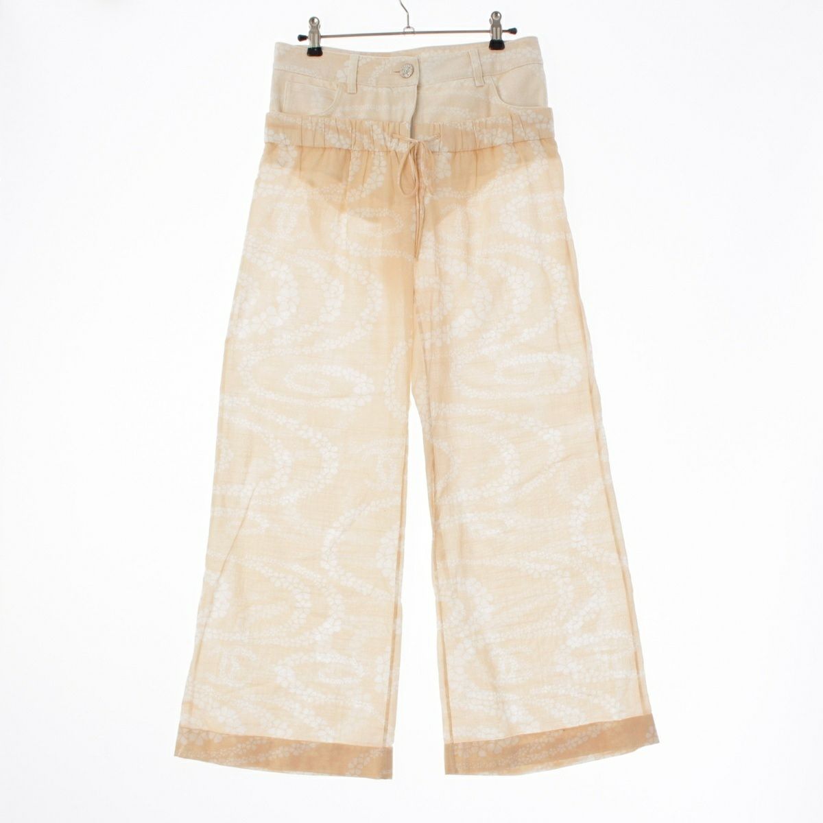 シャネル 25SS デニム切り替え ココビーチ フラワー ココマーク パンツ ボトムス P78578 ベージュ 34