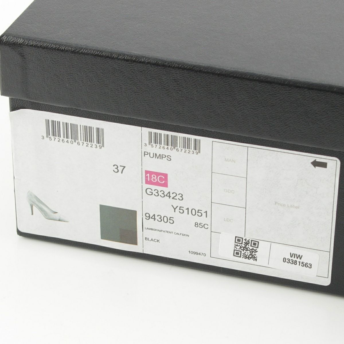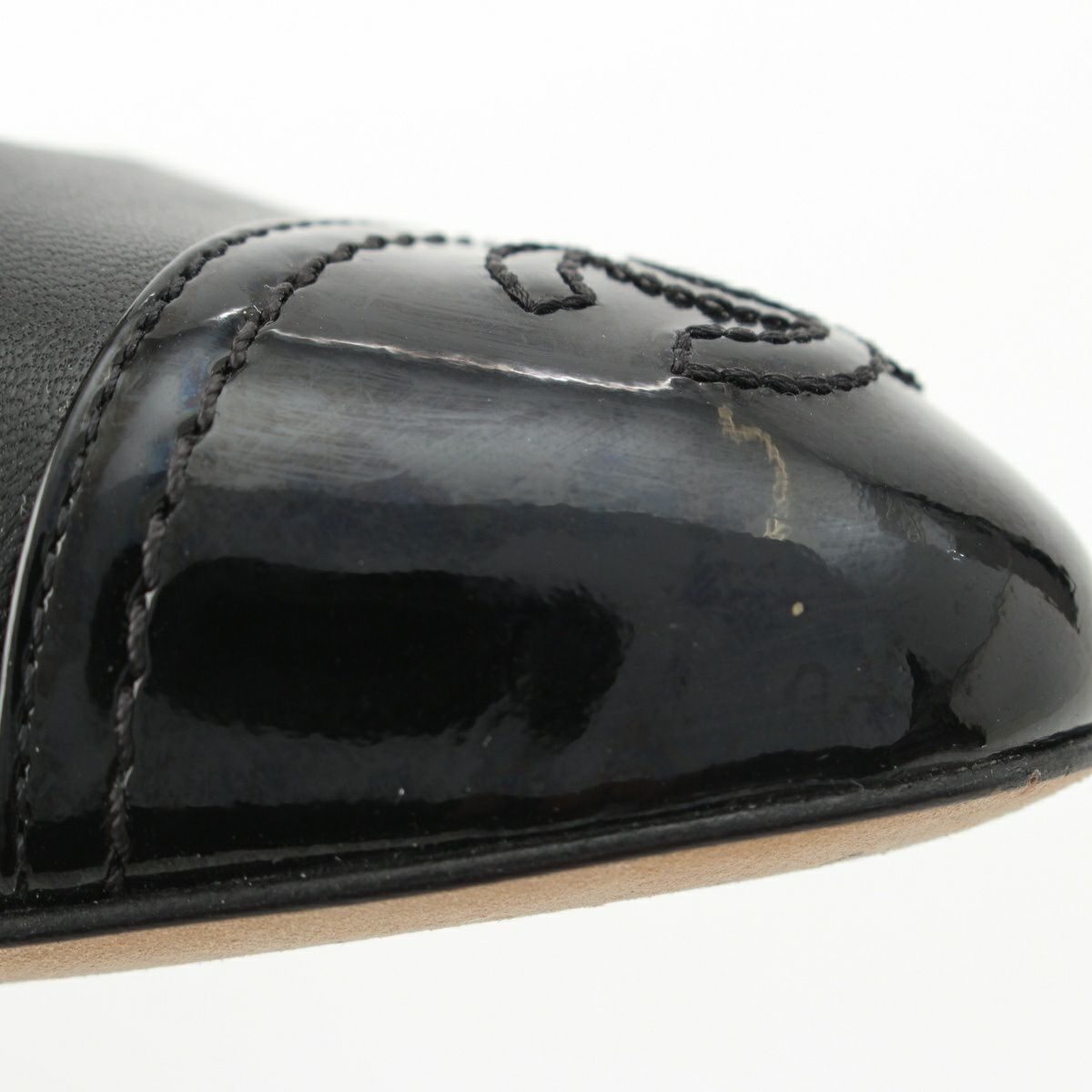 シャネル レザー×パテント ココマーク ヒール パンプス ブラック 37
