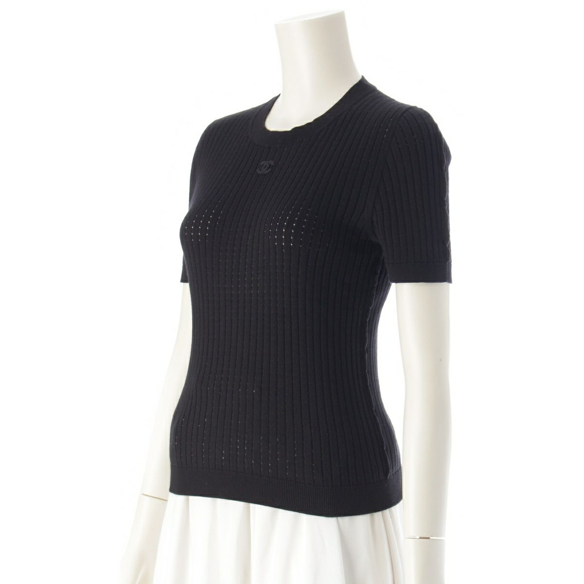 シャネル コットン ココマーク 半袖 ニットトップス セーター P72748 ブラック 38