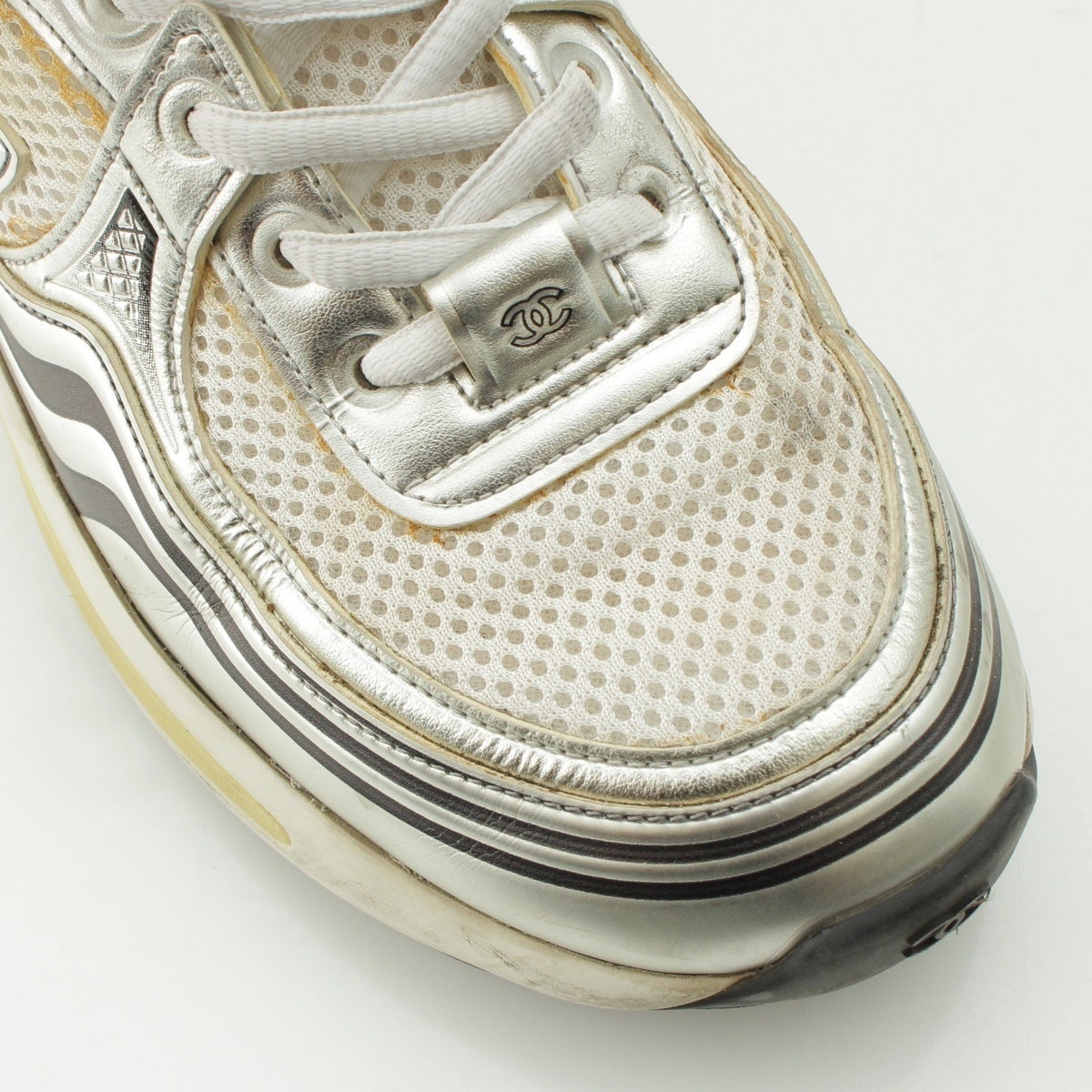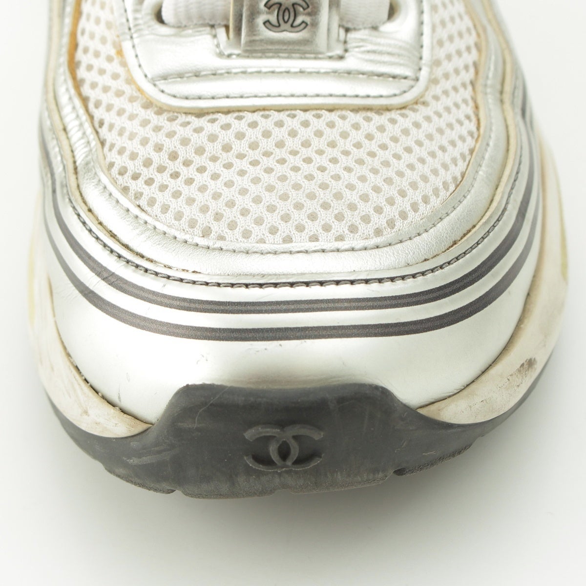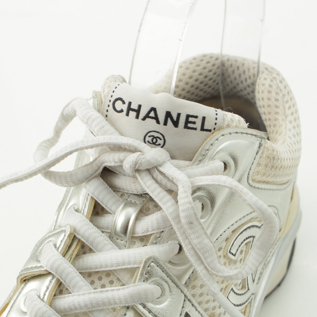 シャネル メッシュ ココマーク スニーカー ローカット G39792 シルバー ホワイト 37