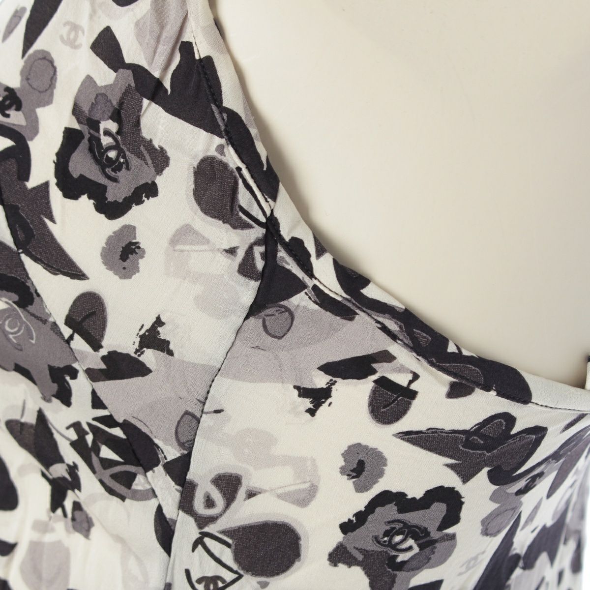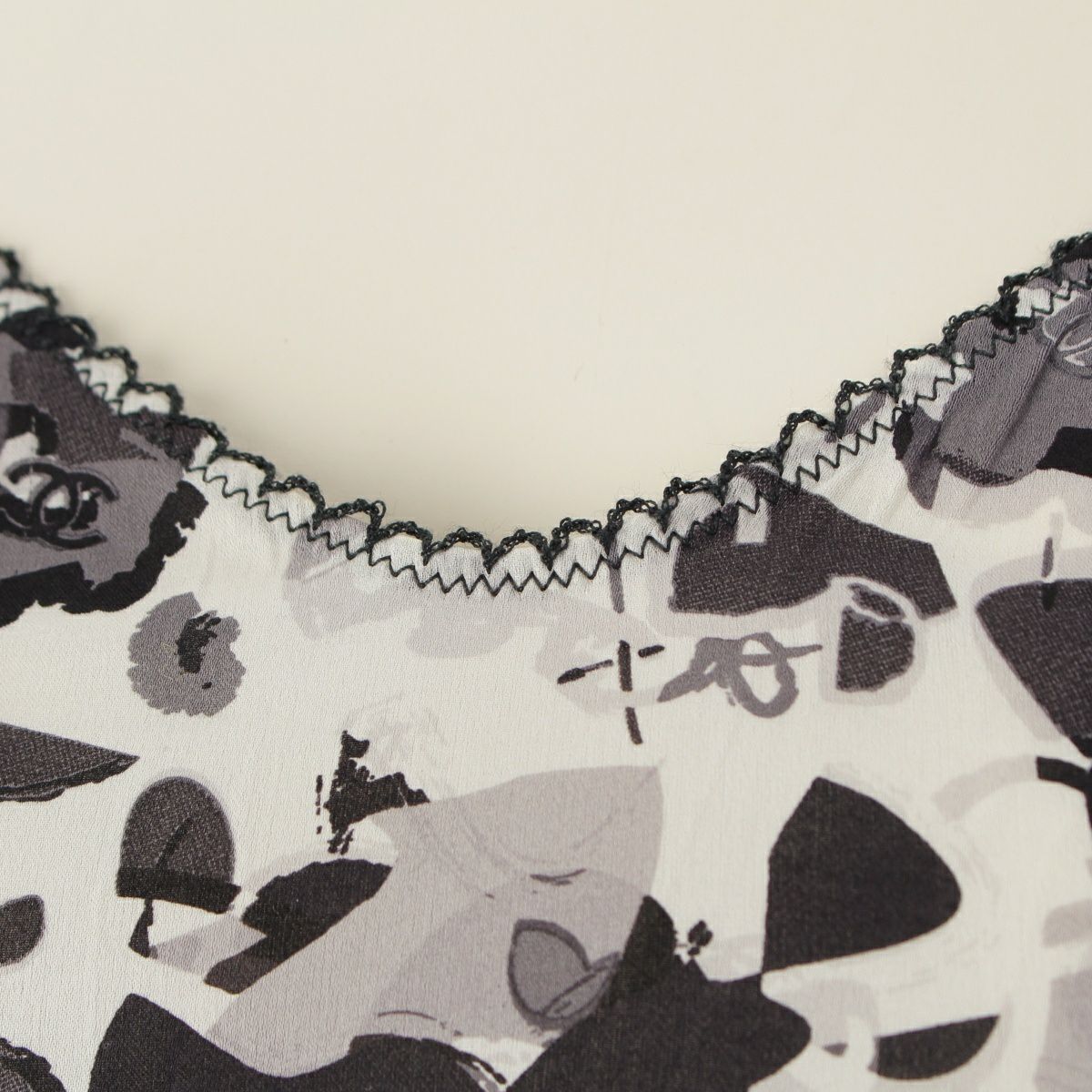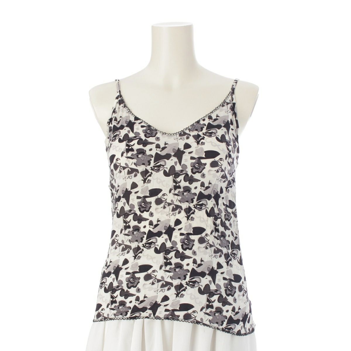 シャネル 05P シルク ココマーク 総柄 キャミソール トップス P25641V16023 ホワイト ブラック 38