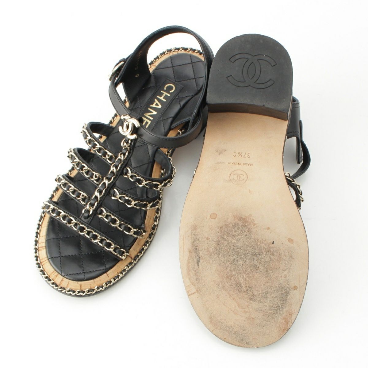 シャネル 24A チェーン ココマーク ミュール サンダル シューズ G45669 ブラック 37 1/2