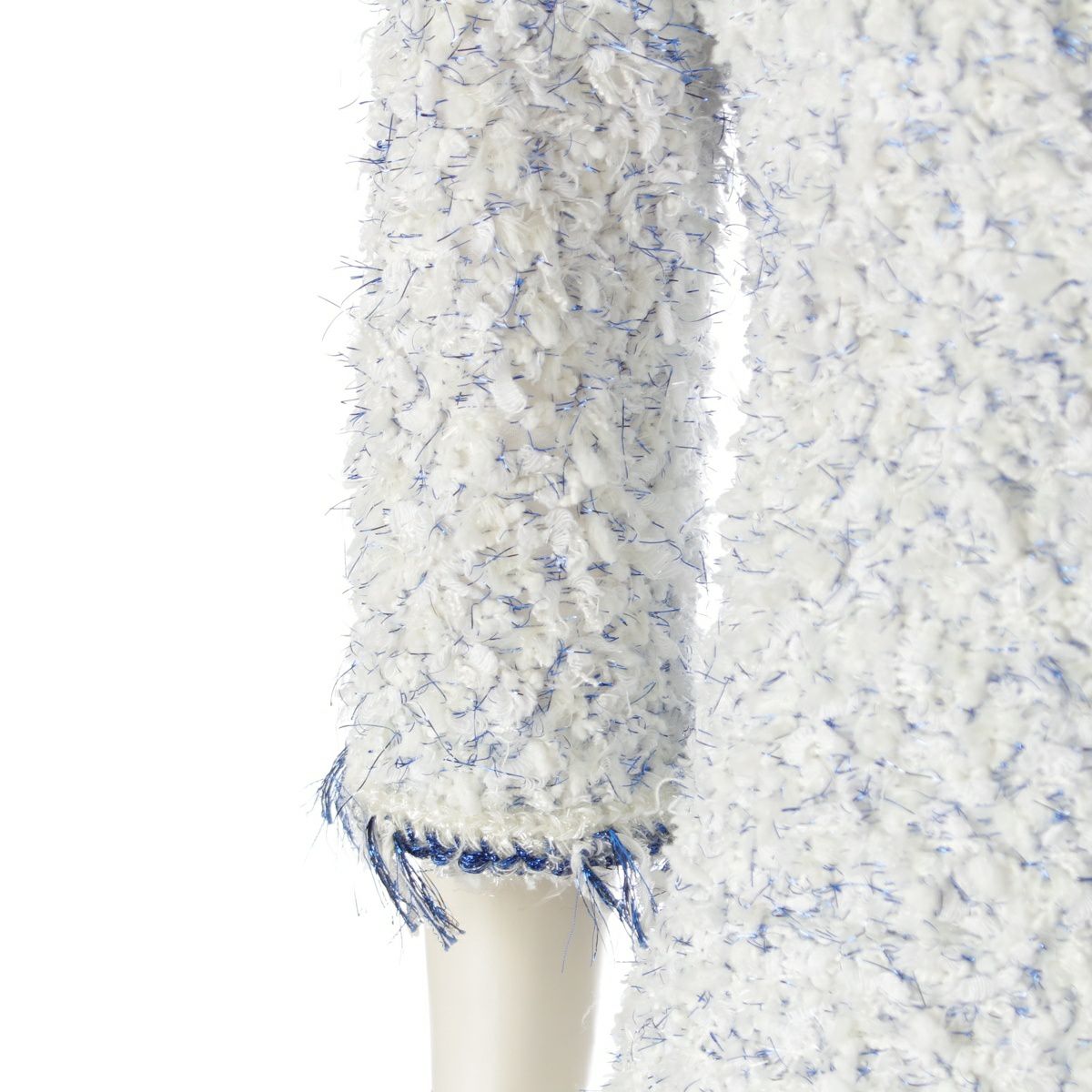 シャネル ナイロン コットン混 ラメ ツイード ノーカラージャケット P58634 ホワイト ブルー 34