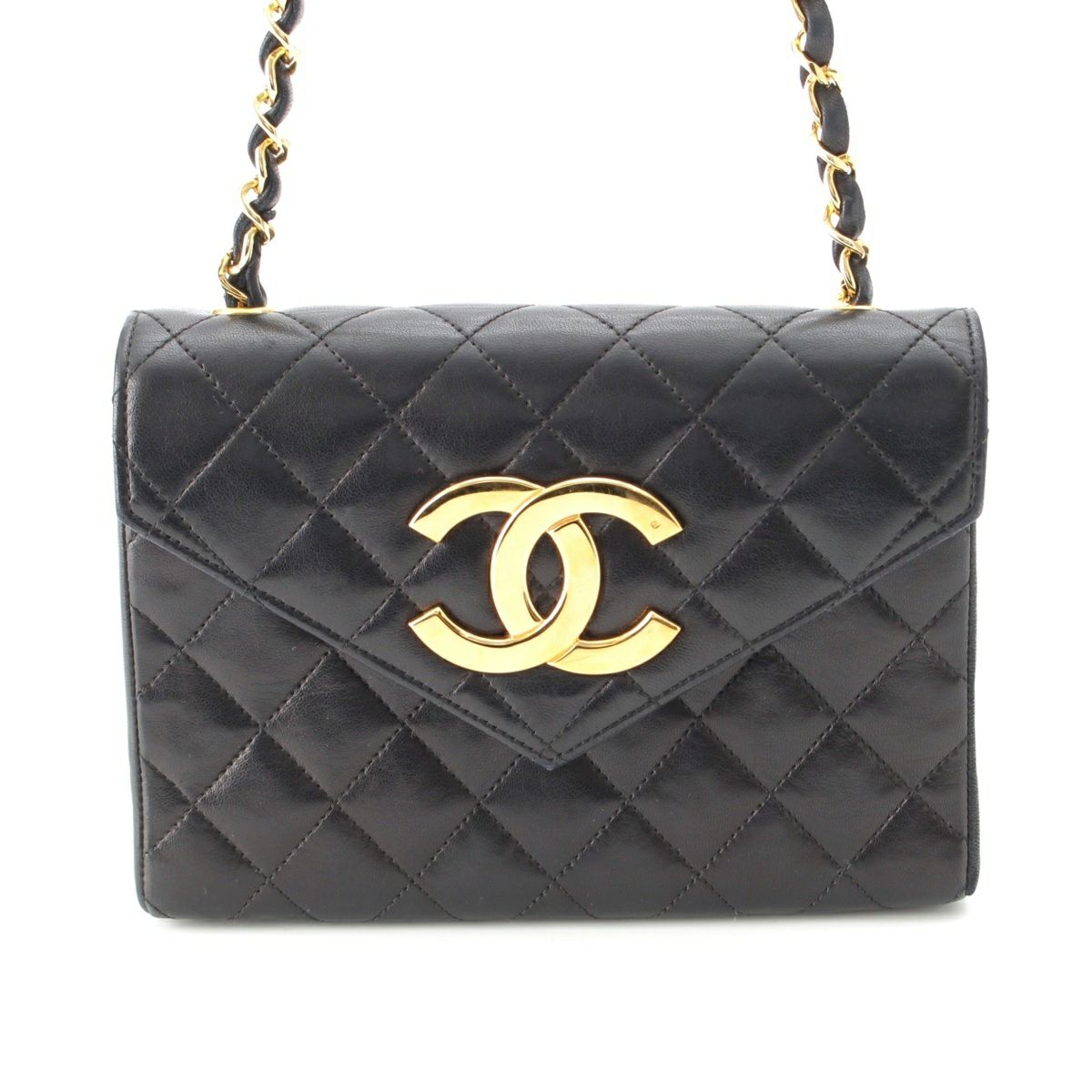 シャネル ラムスキン デカココ チェーン ショルダーバッグ ブラック