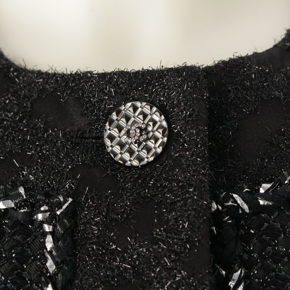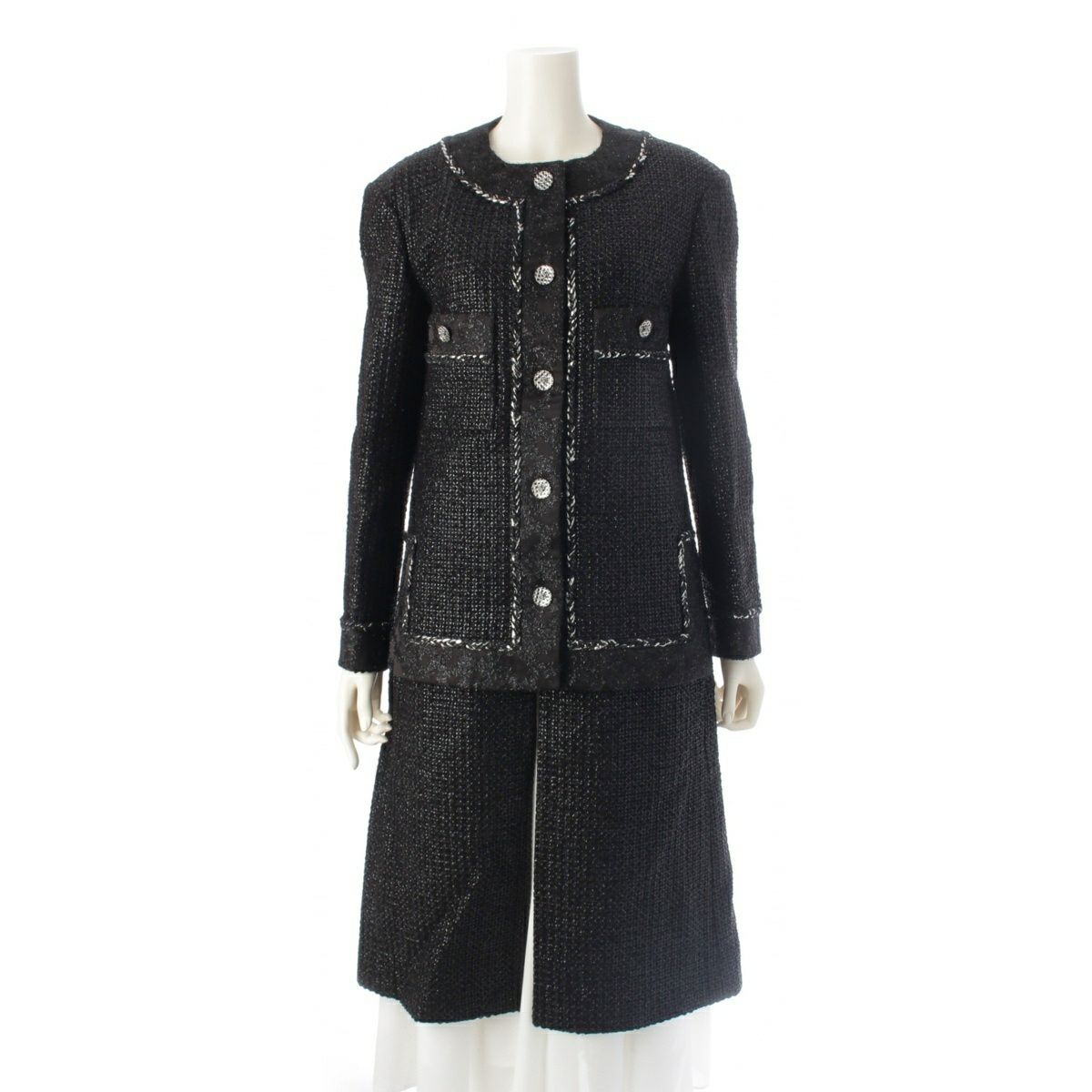 シャネル 22AW ツイード ココボタン ノーカラージャケット コート P73114 ブラック 36