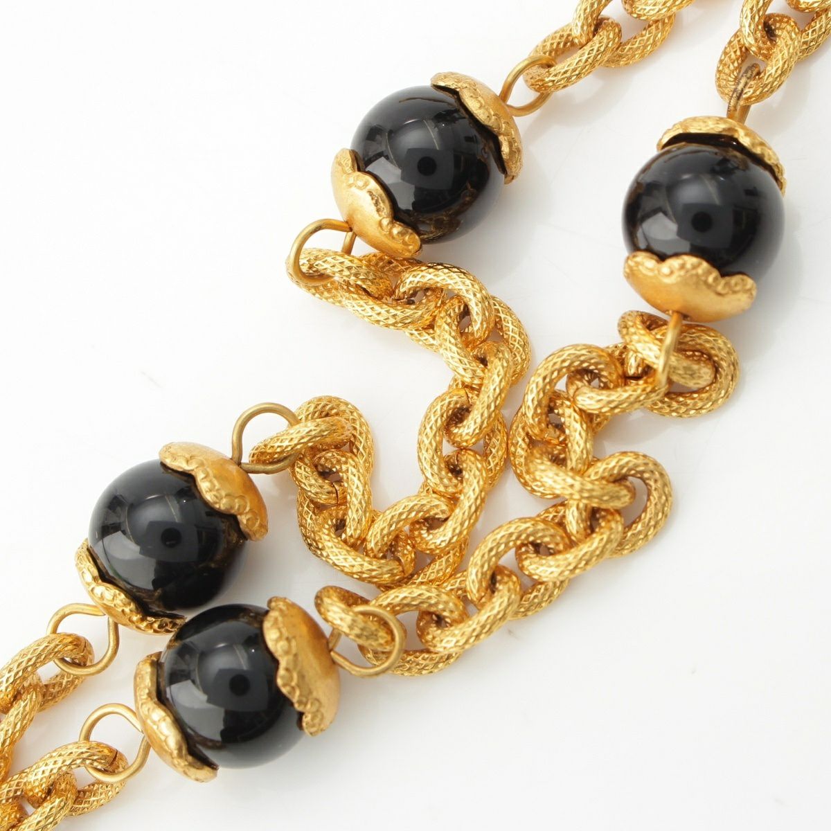 シャネル 96A ブラックストーン ココマーク ネックレス アクセサリー ゴールド ブラック