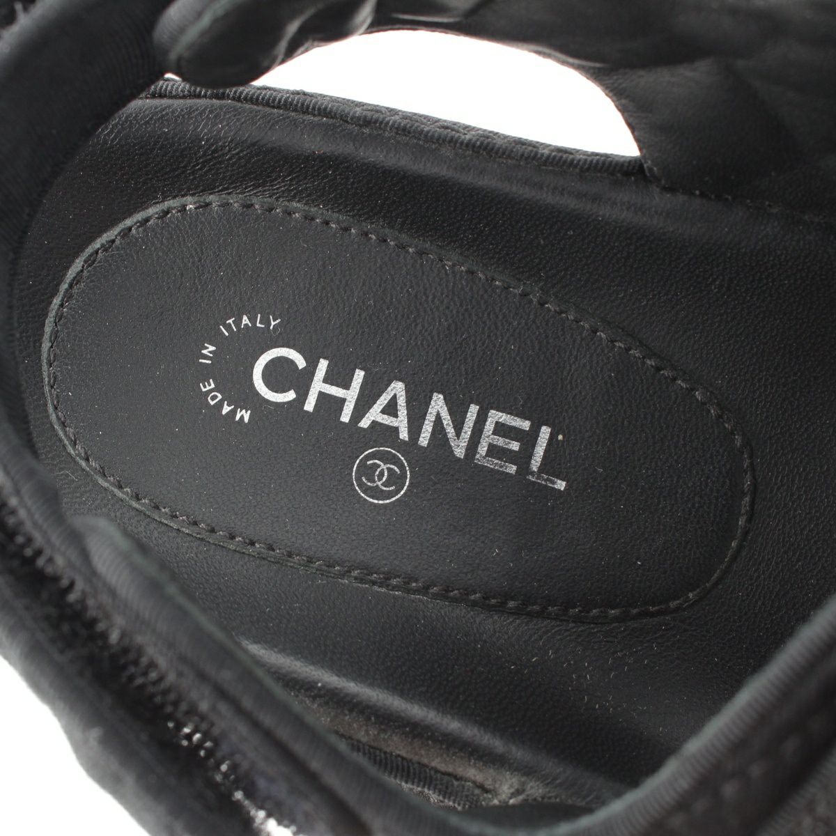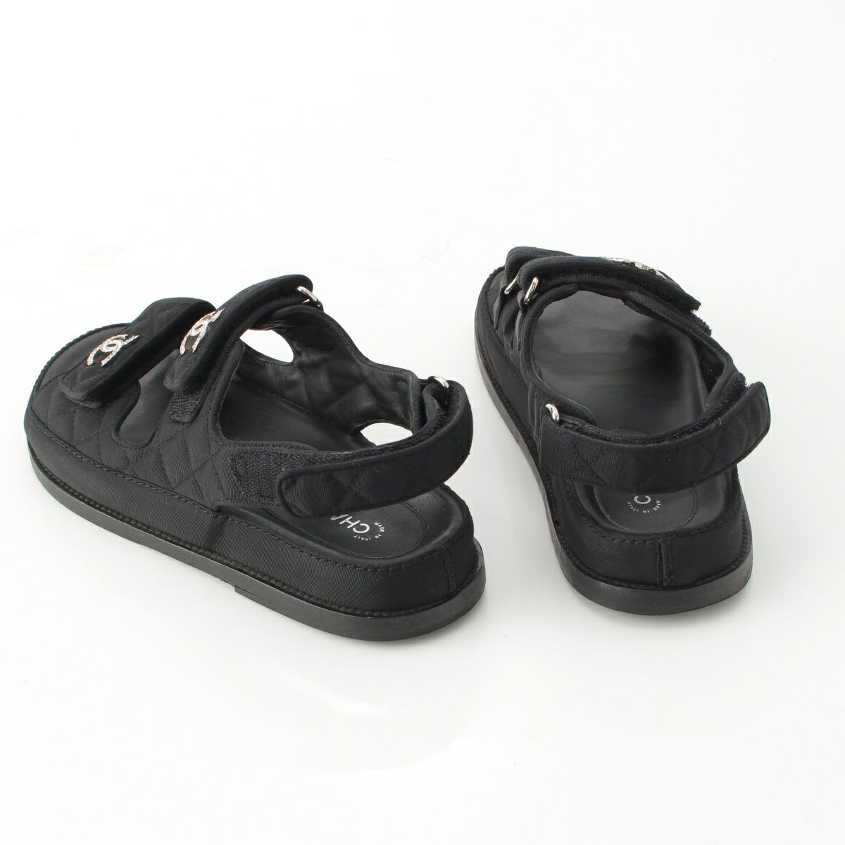 シャネル 17P ファブリック ココマーク ラインストーン フラット サンダル シューズ G31848 ブラック 36C