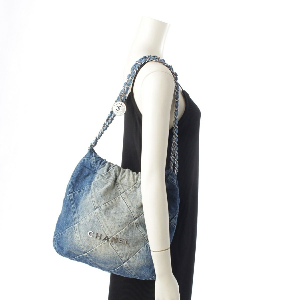シャネル シャネル22 デニム マトラッセ ロゴ ショルダーバッグ AS3261 ブルー