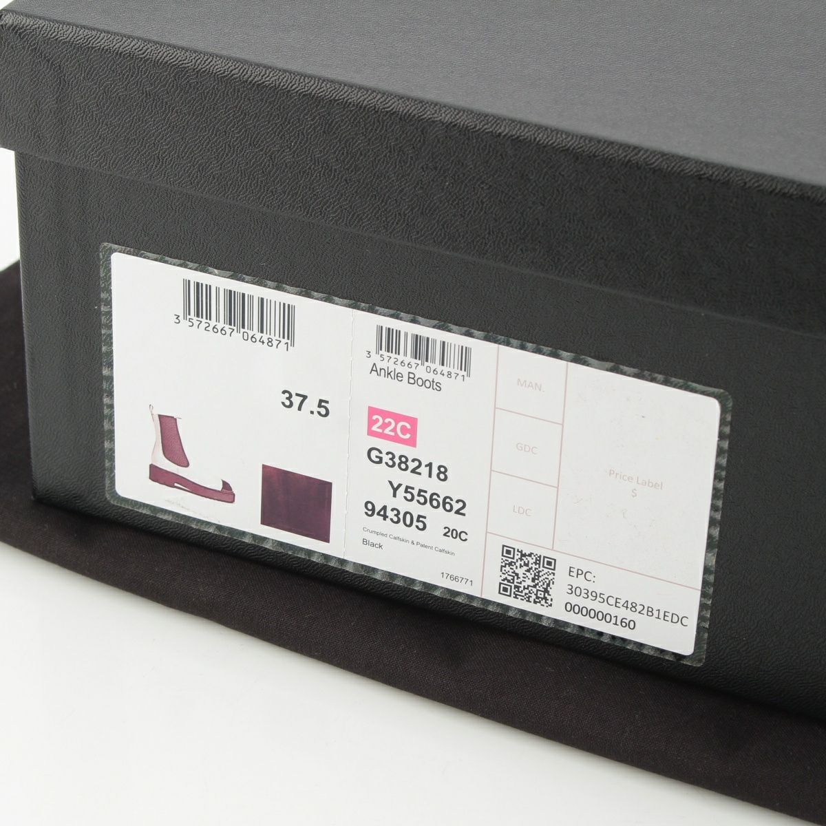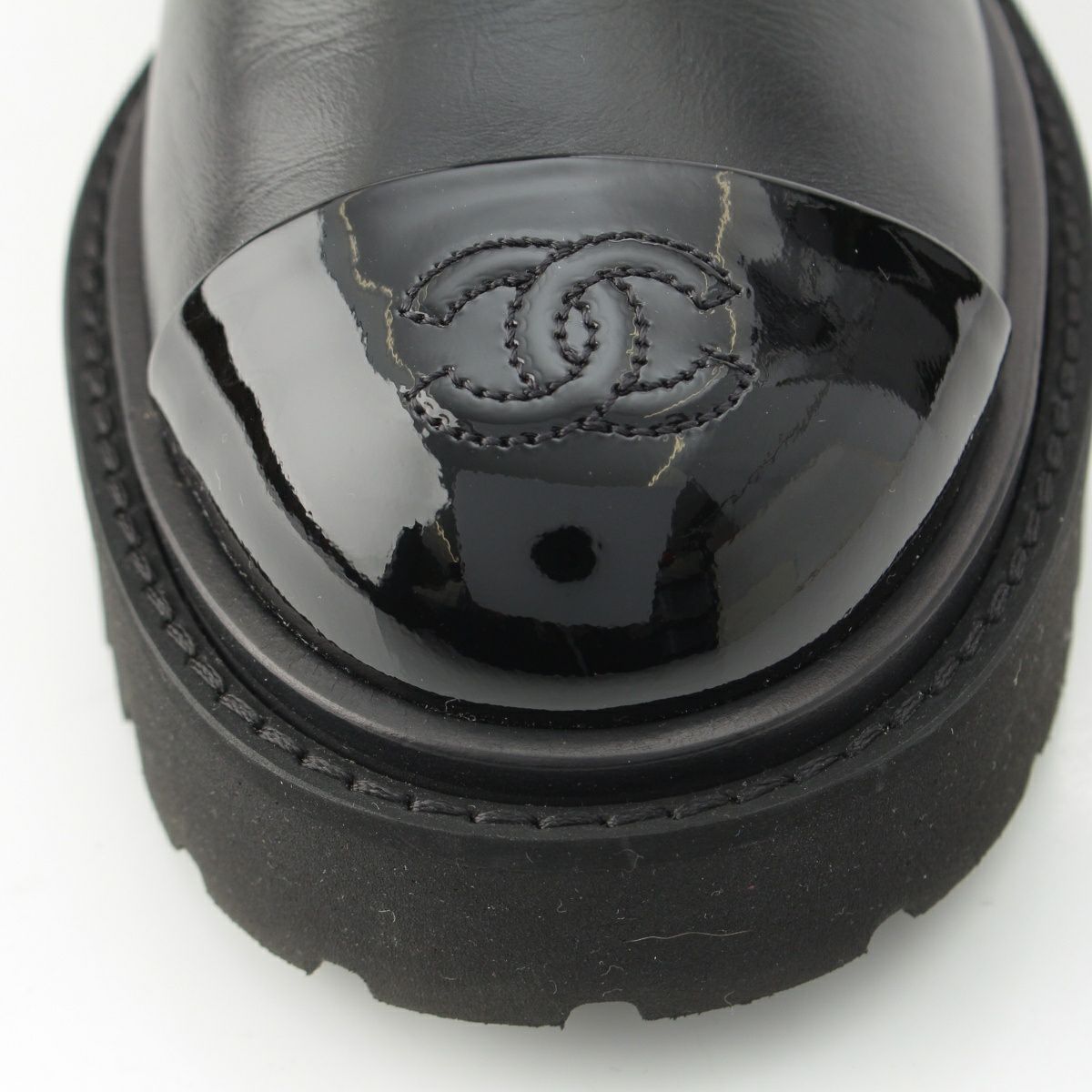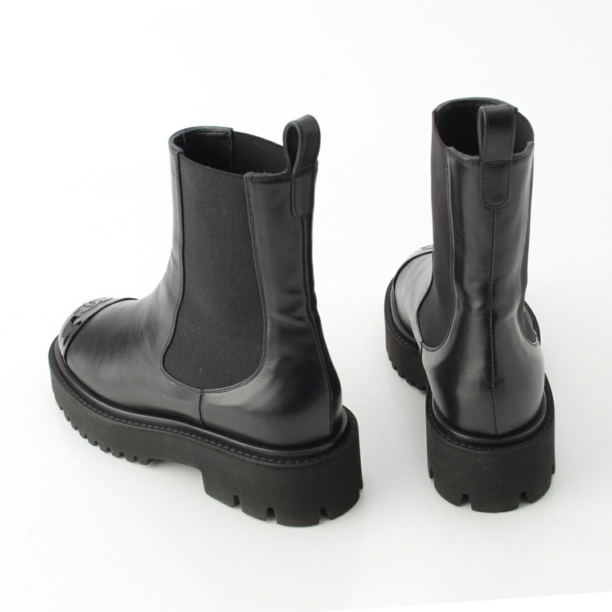 シャネル レザー パテント サイドゴア ショート ブーツ チェルシー ココマーク G38218 ブラック 37 1/2