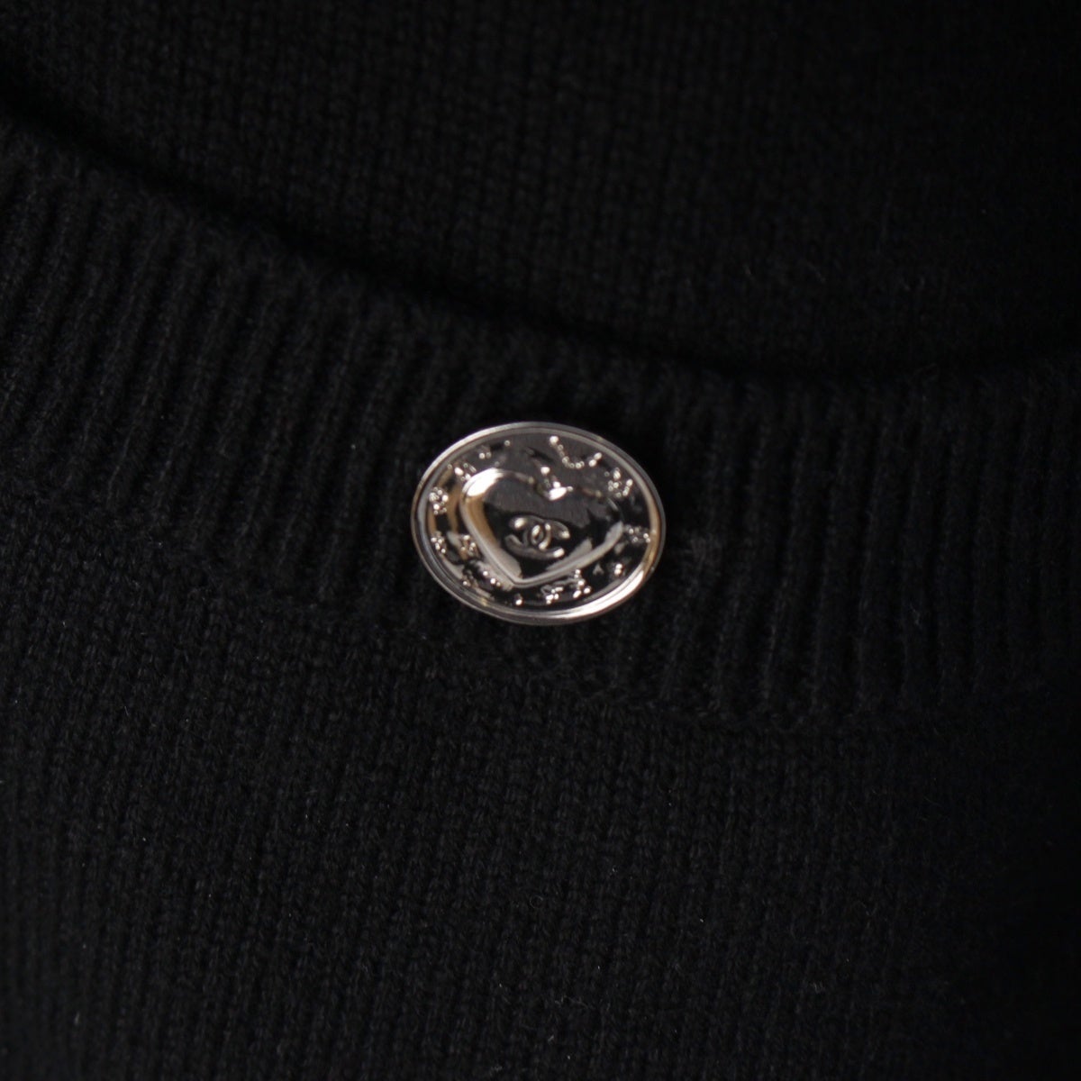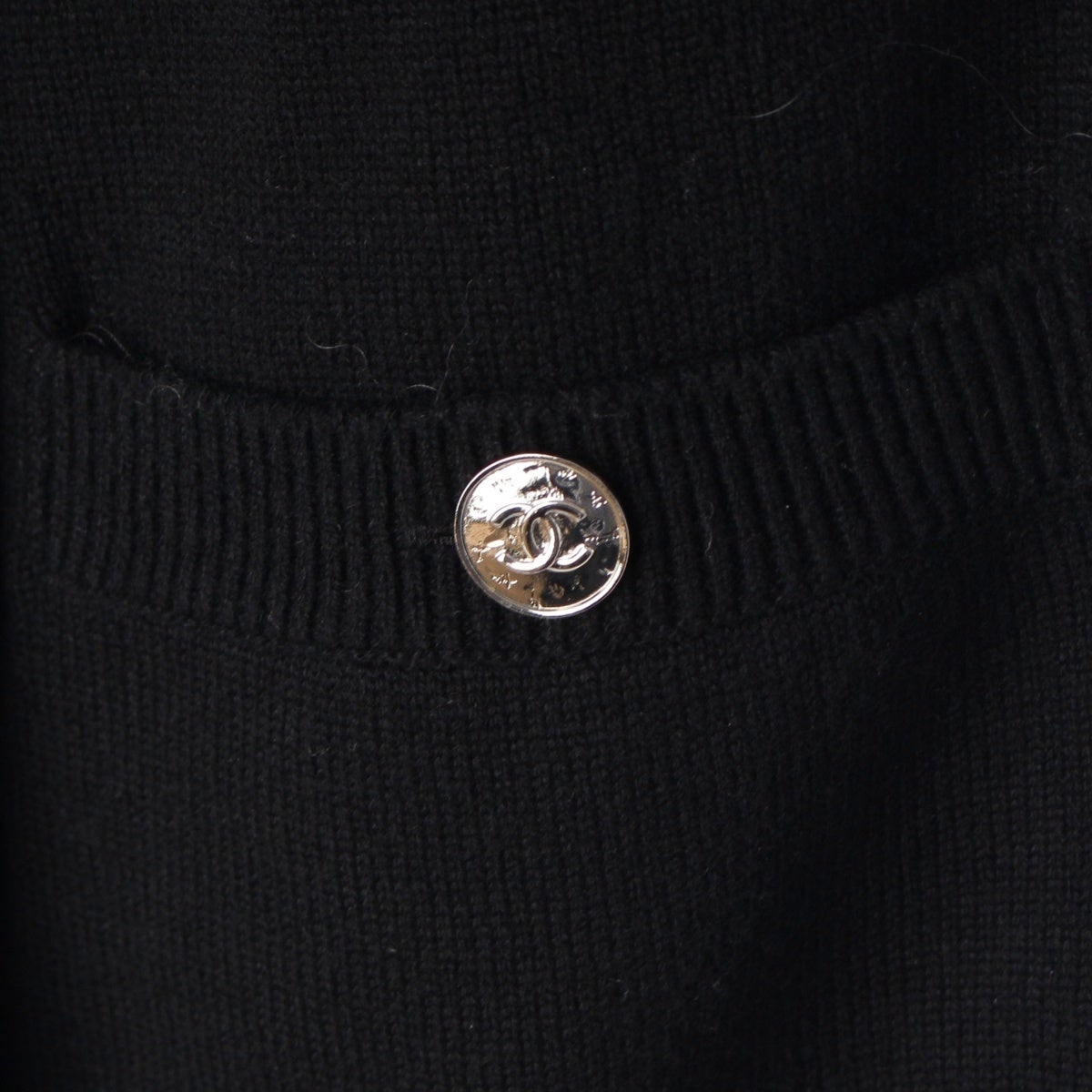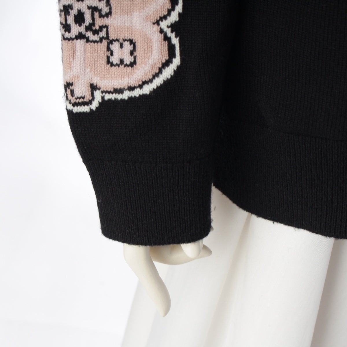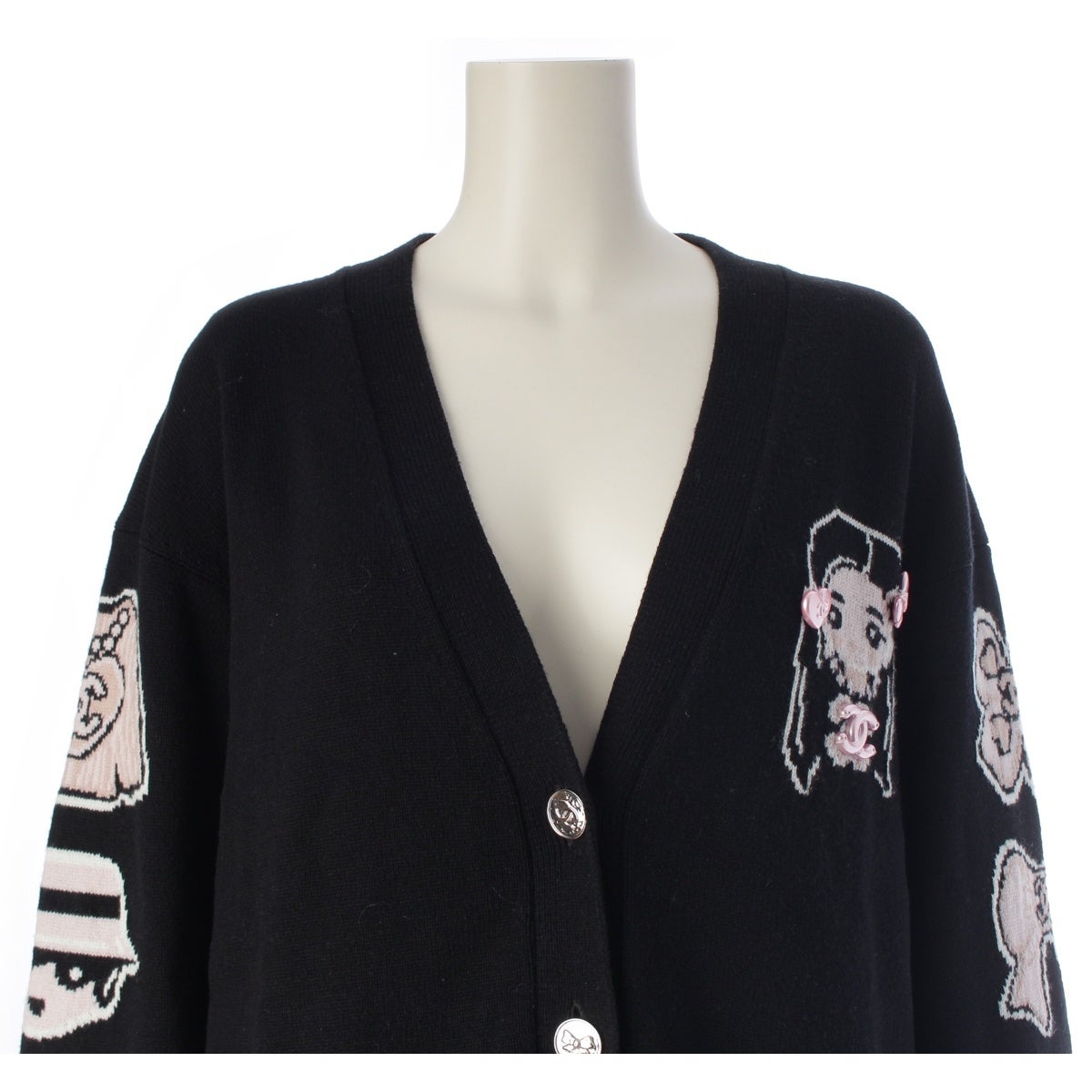 シャネル 2025-26AW LOOK49 カシミヤ キャラクタープリント アイコン カーディガン P80231 ブラック×ピンク 38