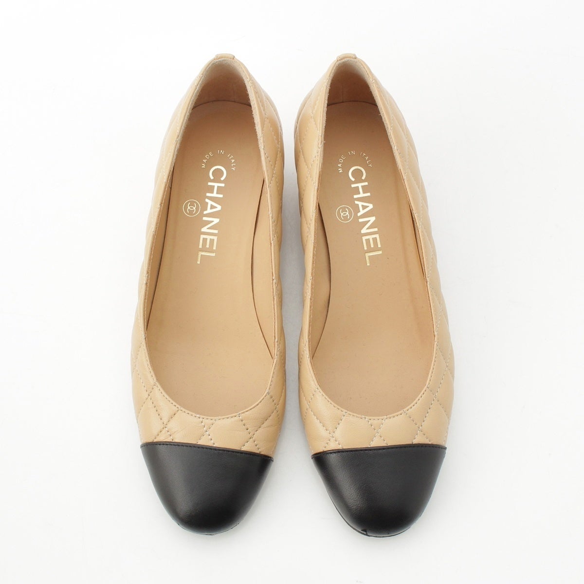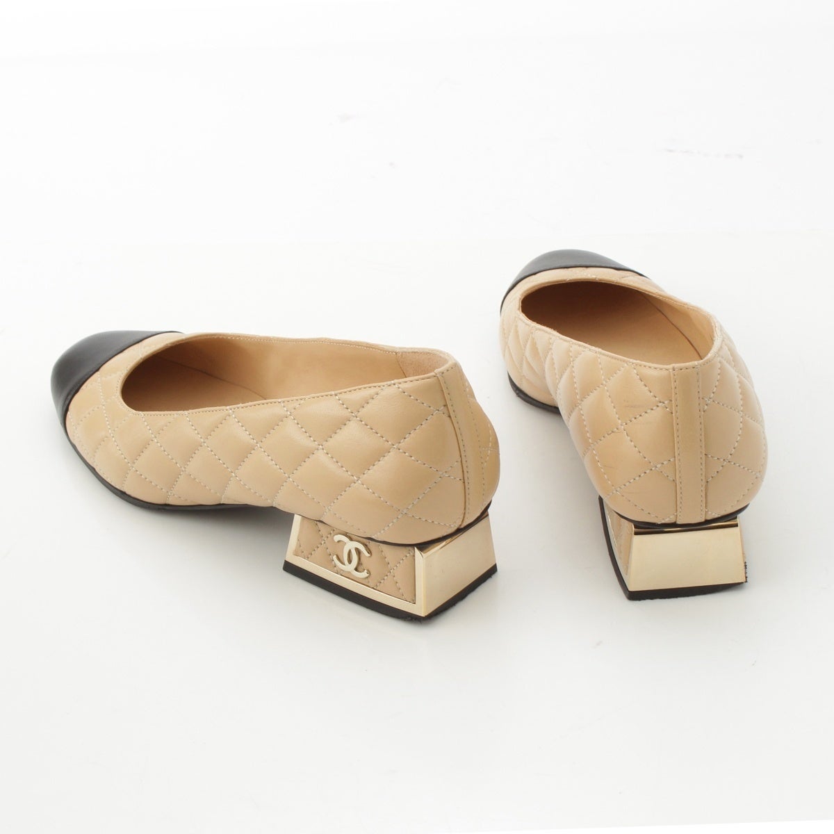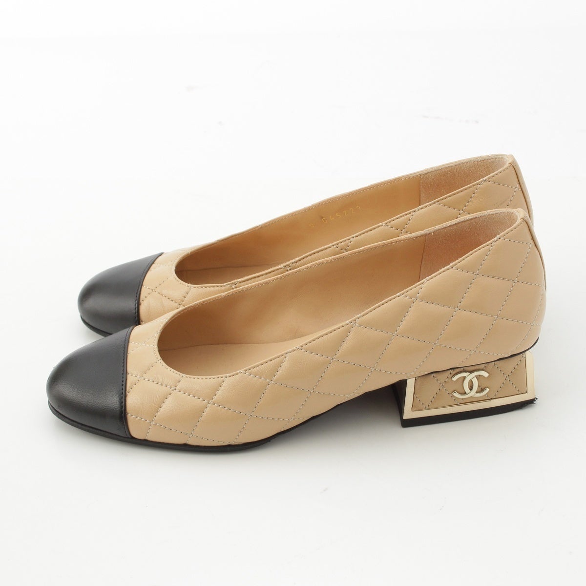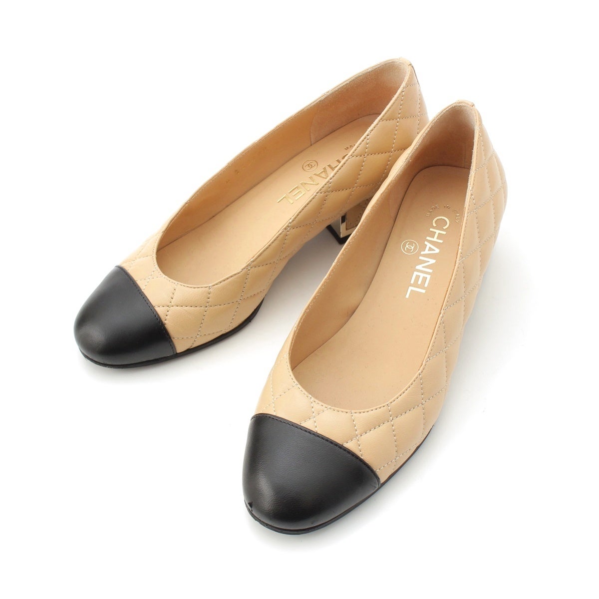 シャネル マトラッセ ラムスキン ココマーク バイカラー パンプス G45229 ベージュ ブラック 36C