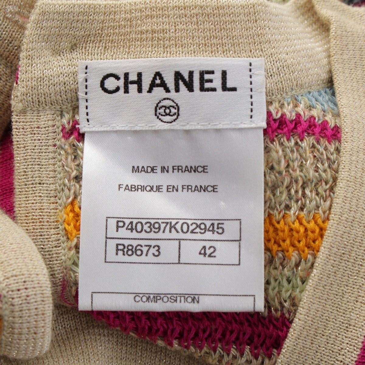 シャネル コットン ニット ノースリーブ ボーダー柄 ワンピース P40397 マルチカラー 42