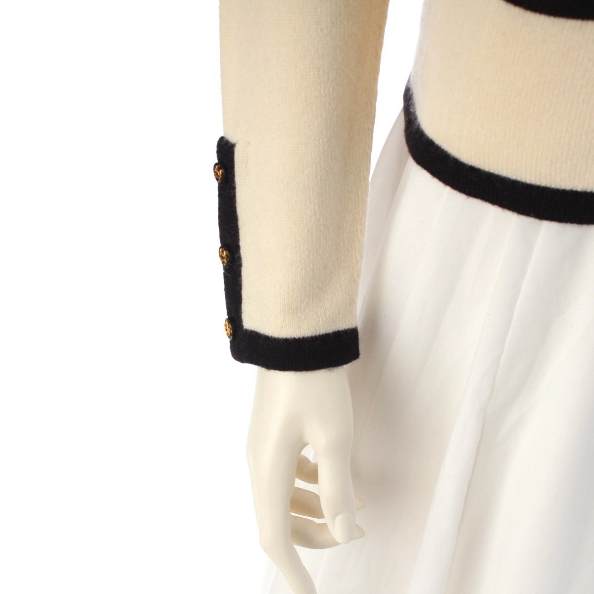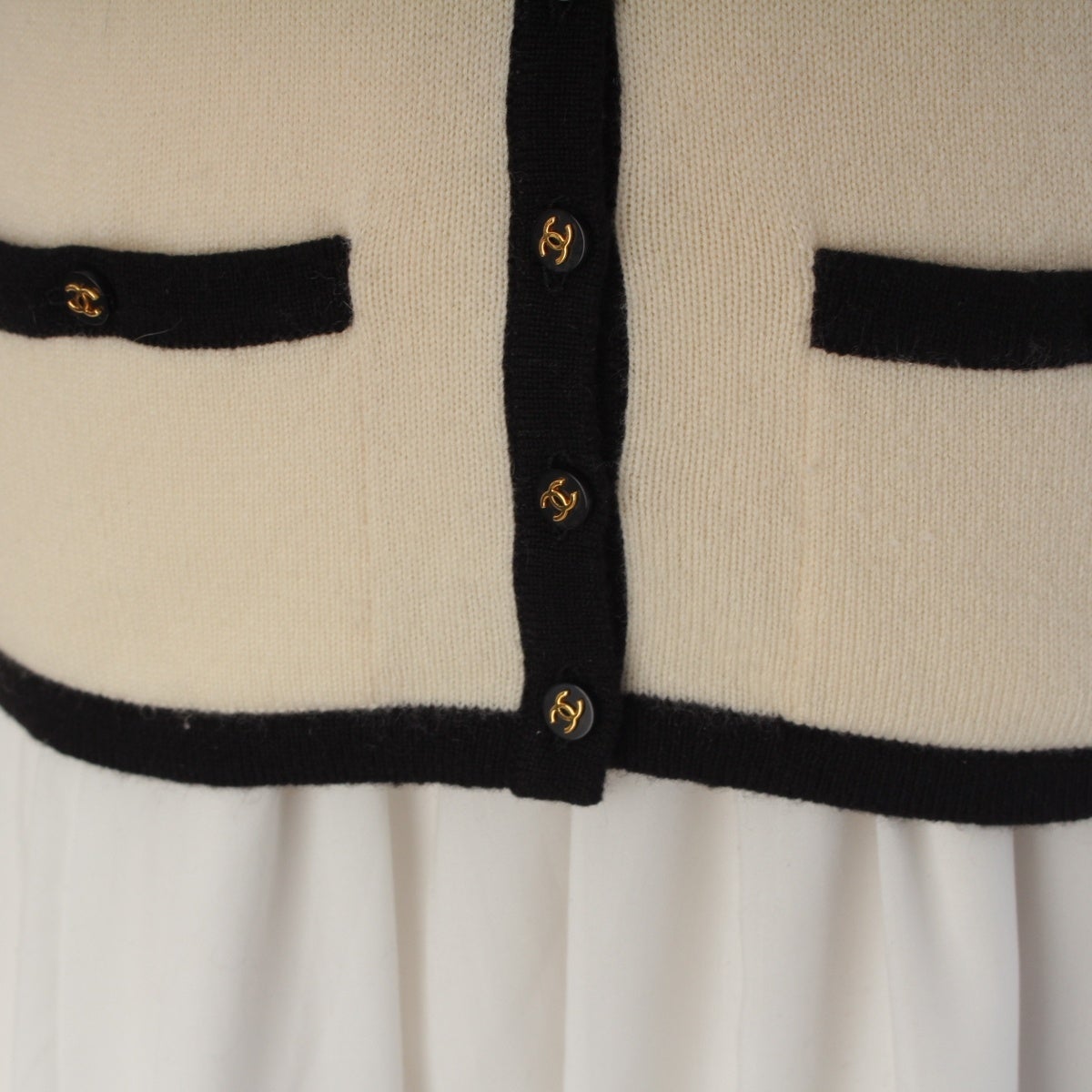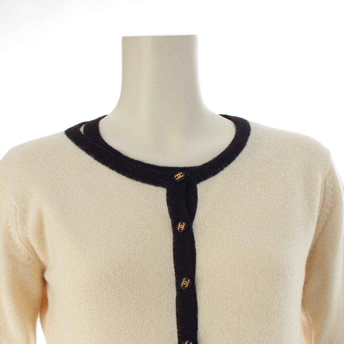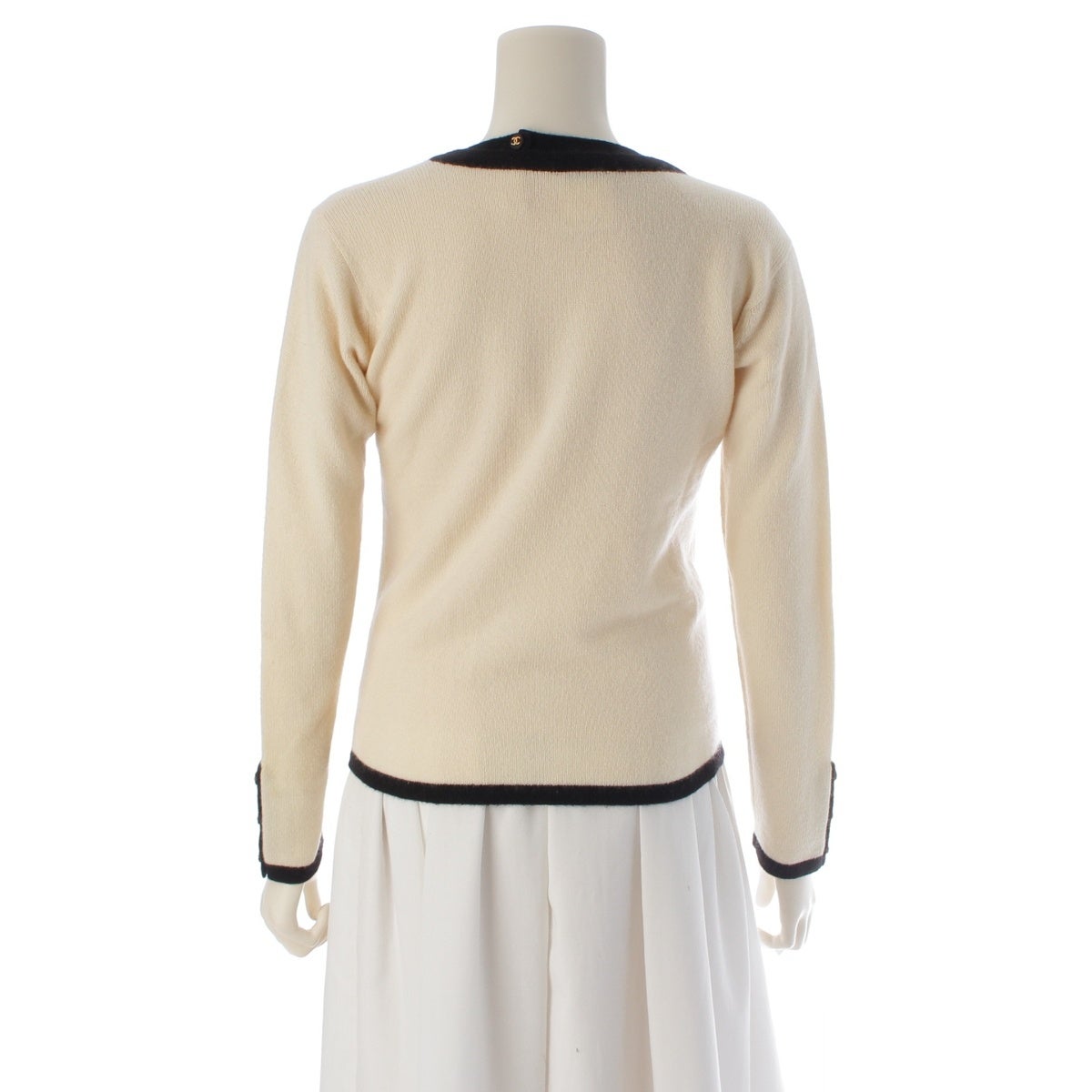 シャネル 1996 カシミヤ ココボタン アンサンブル ニット トップス&カーディガン PO6253 ホワイト×ブラック 34