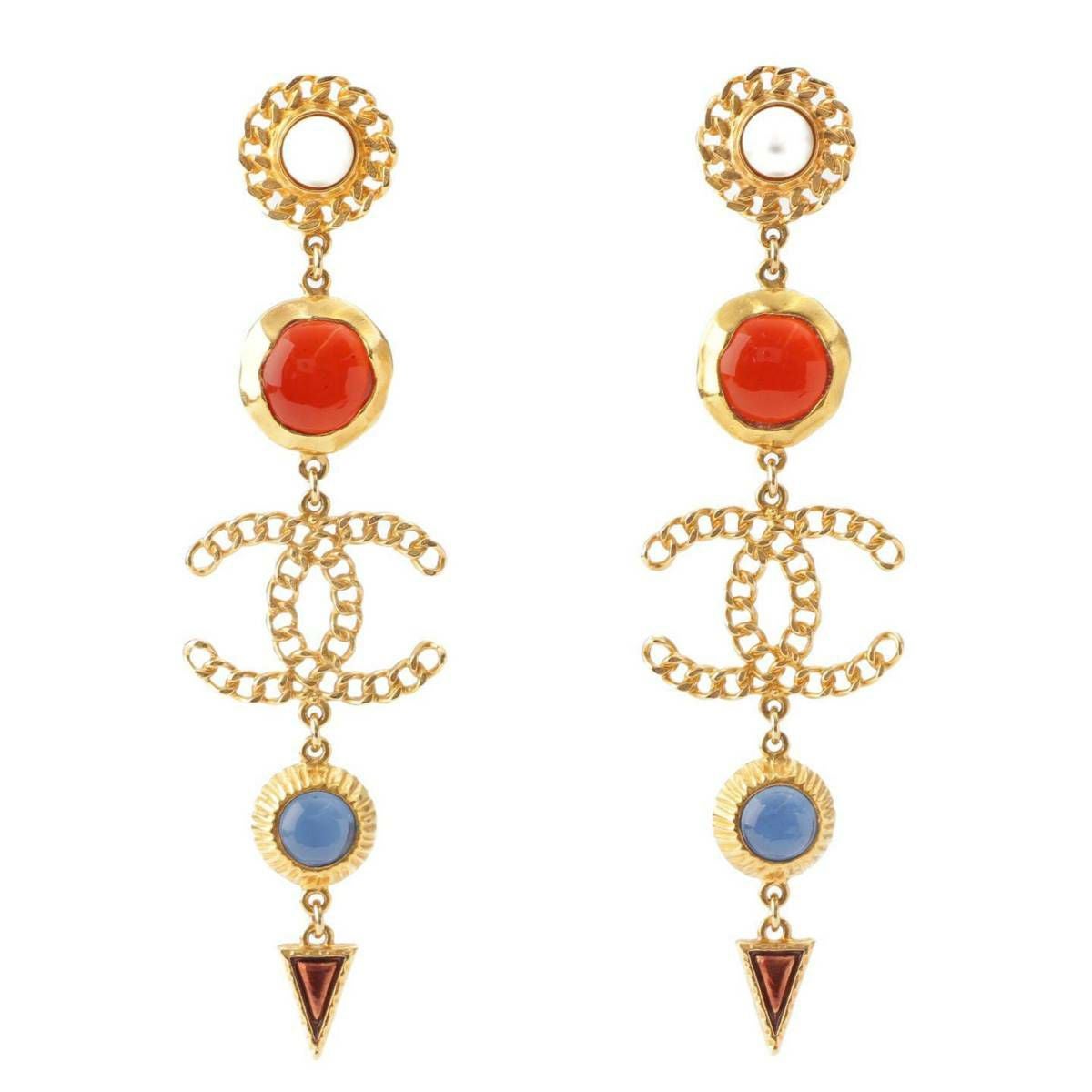 シャネル A18K ココマーク パール カラーストーン ピアス アクセサリー GP ゴールド