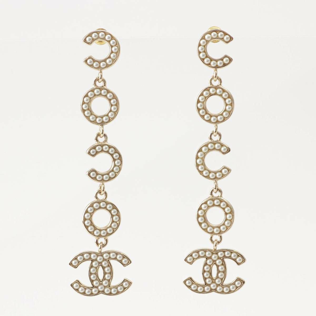 シャネル B21P ココマーク COCOロゴ パール ピアス シャンパンゴールド