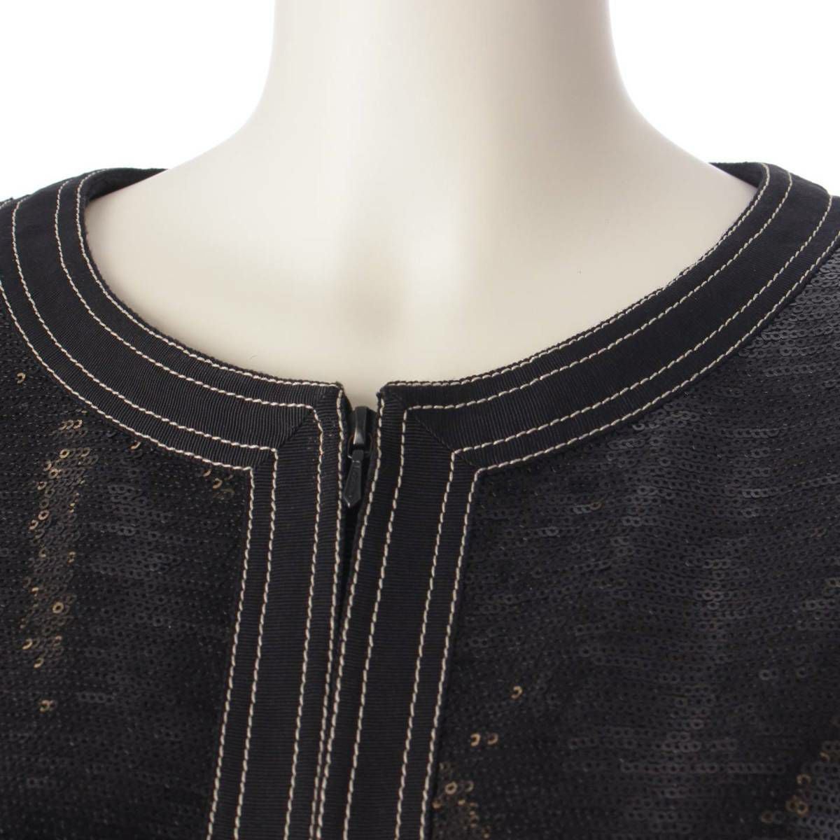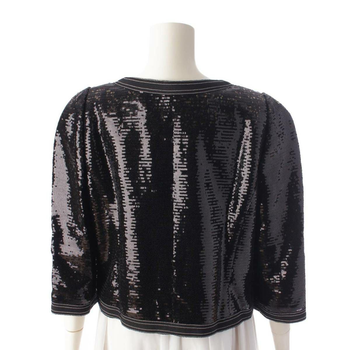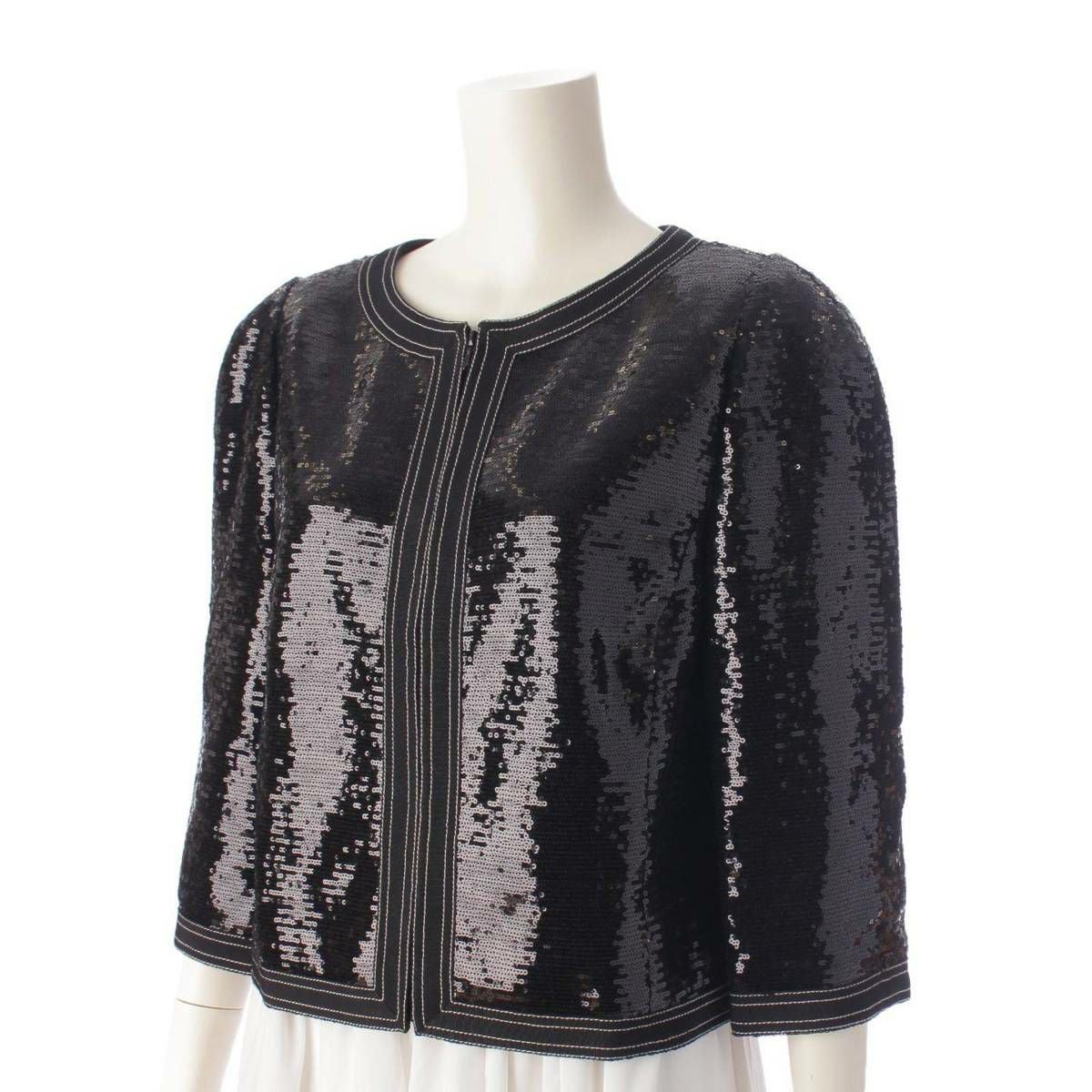 シャネル スパンコール 七分袖 ジップ ノーカラー ジャケット P45044 ブラック 44