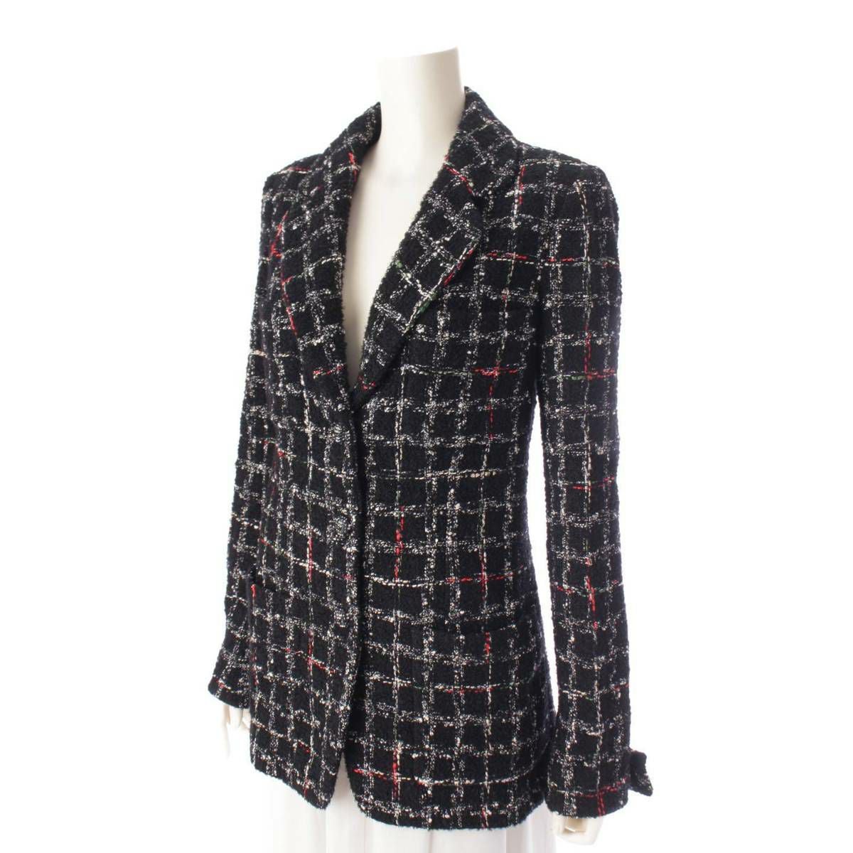 シャネル 23AW ラインストーン シルク アルパカ混 ツイード ジャケット P73609 ブラック 34