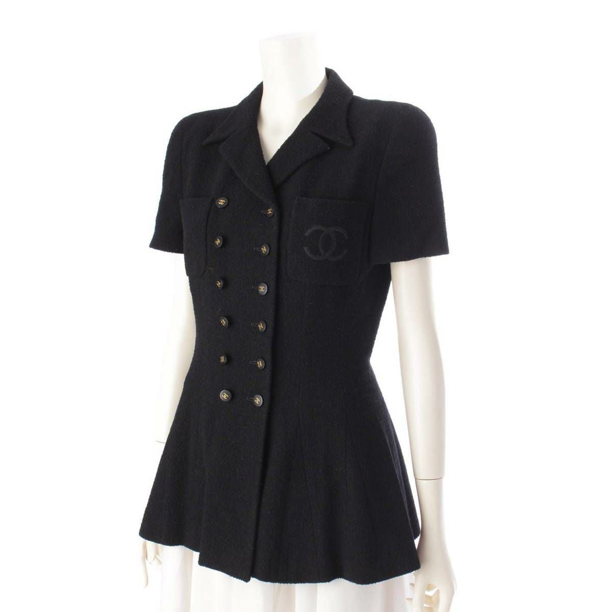 シャネル Chanel 95P ココマーク刺繍 ウール 半袖 ツイードジャケット P050538 ブラック 38