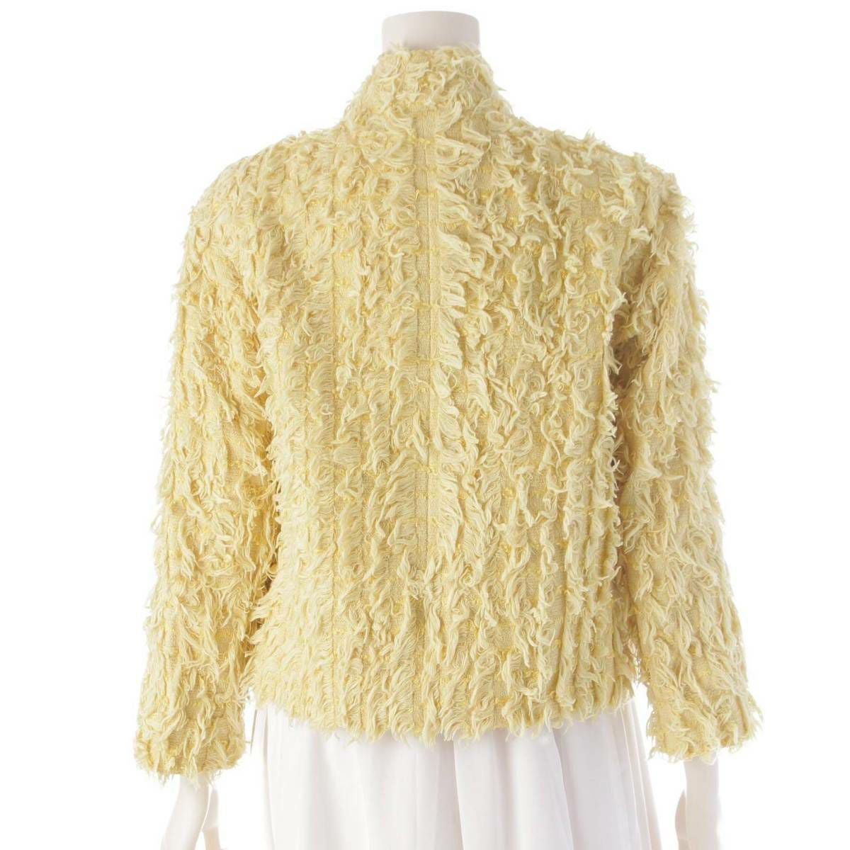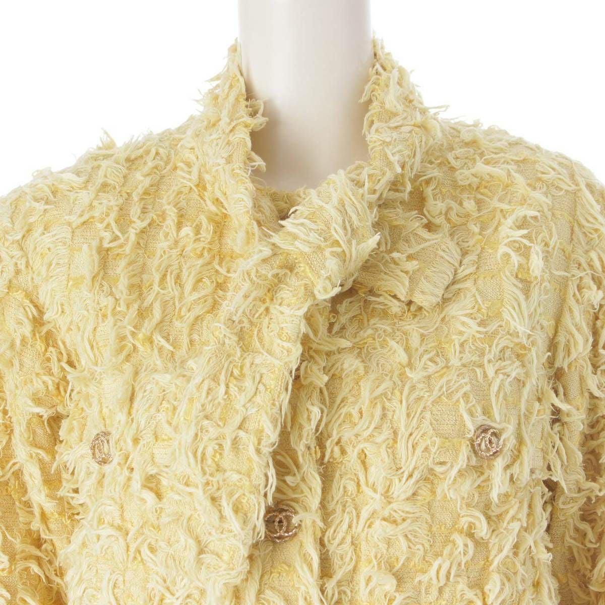 シャネル 21C ココマークボタン 4ポケット ボウタイ ツイード ジャケット P70022 イエロー 34