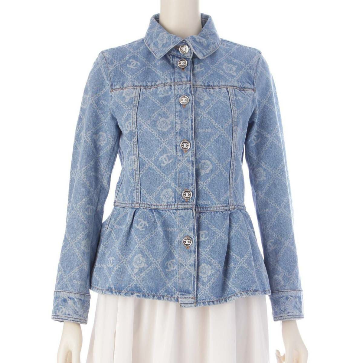 シャネル Chanel 23-24AW ココマーク マトラッセ カメリア デニム ジャケット ブルー 34