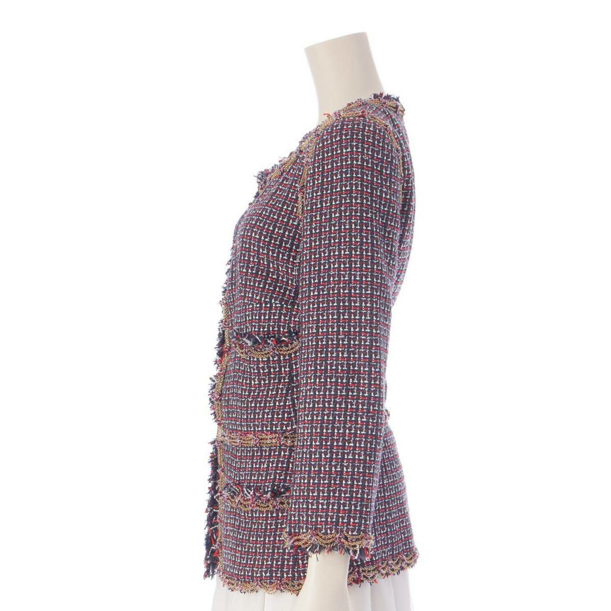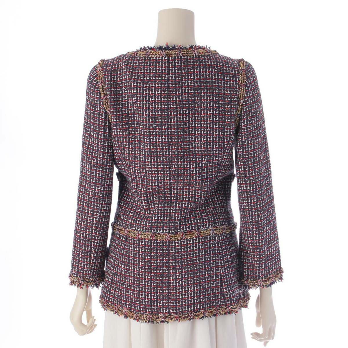 シャネル 08P ココマーク エンブレム チェーン ツイードジャケット P33184 ネイビー レッド 36