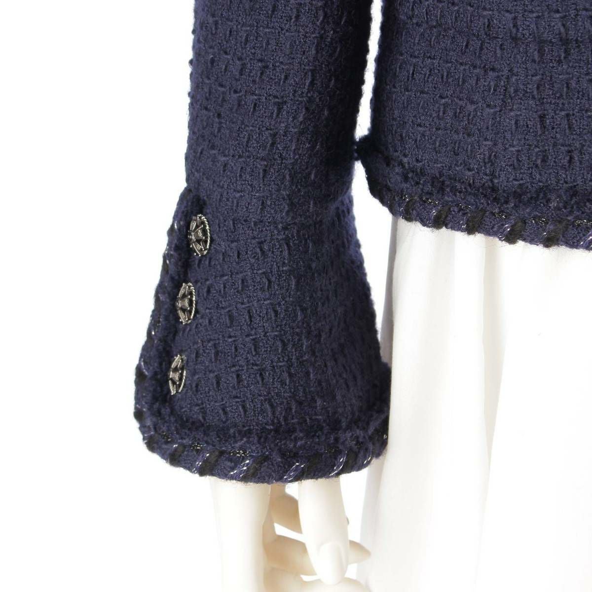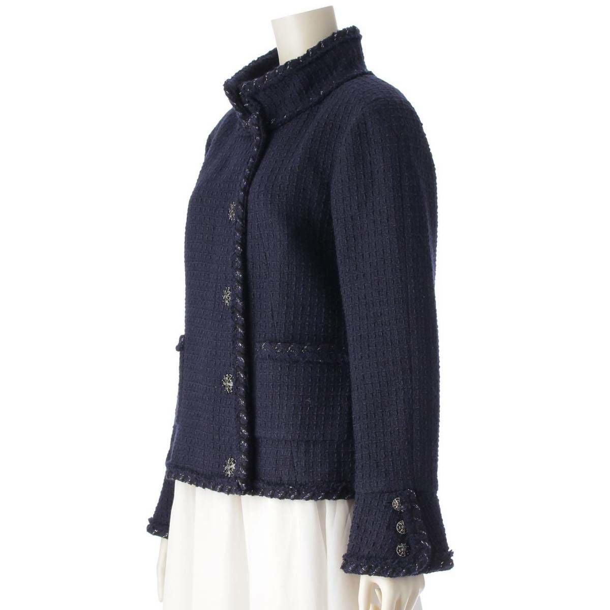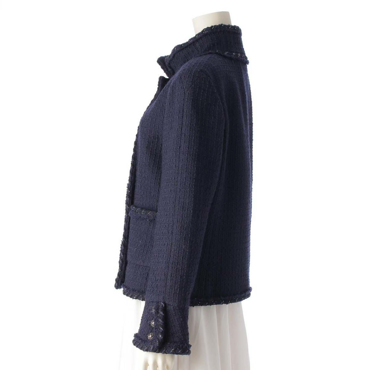 シャネル Chanel 08A ツイード ラメ ココボタン 裾チェーン ジャケット コート P33944 ネイビー 46