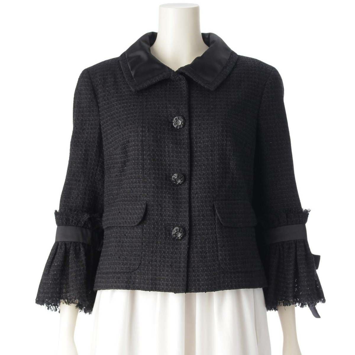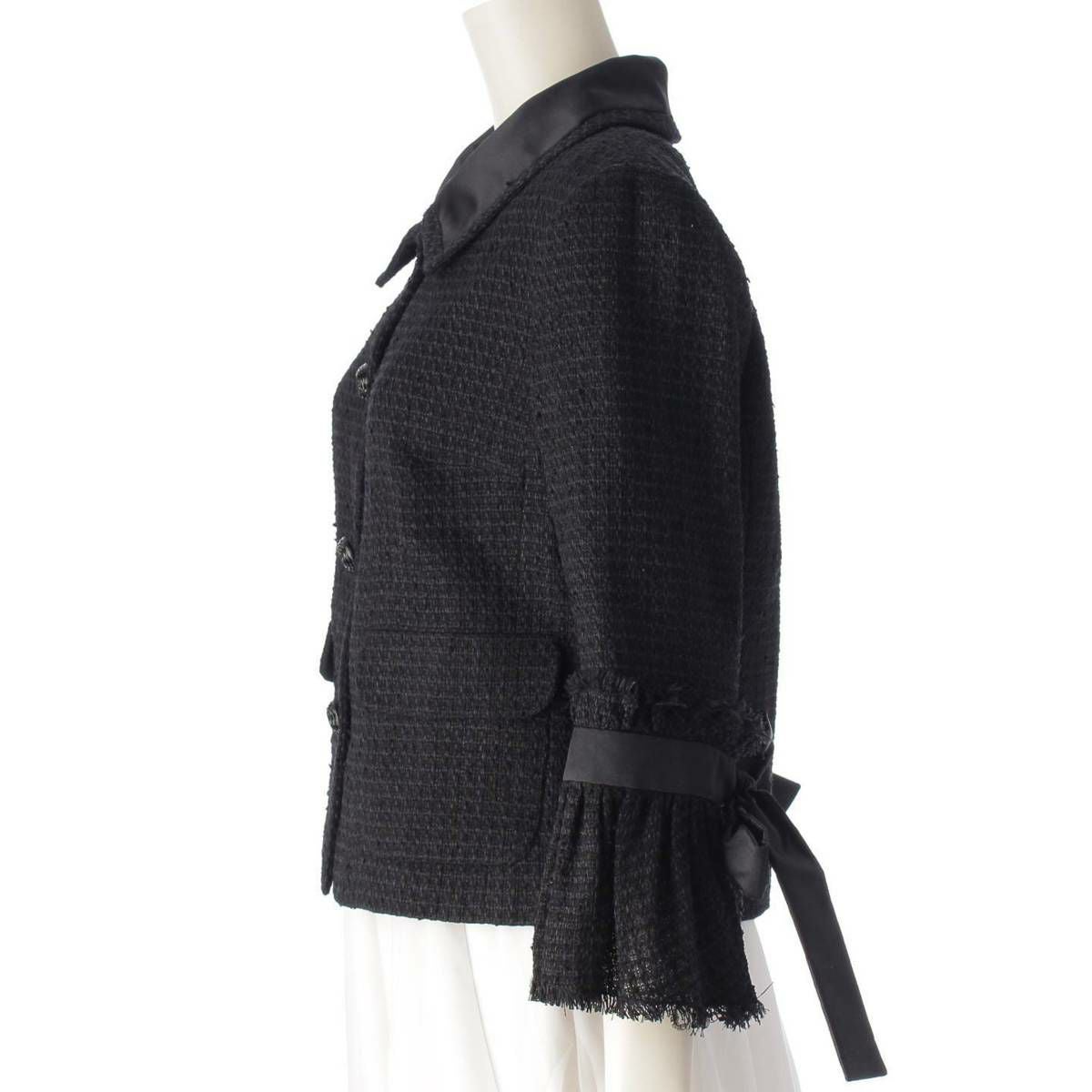 シャネル 09P ナイロン×コットン ツイード 袖リボン ジャケット P34951 ブラック 42