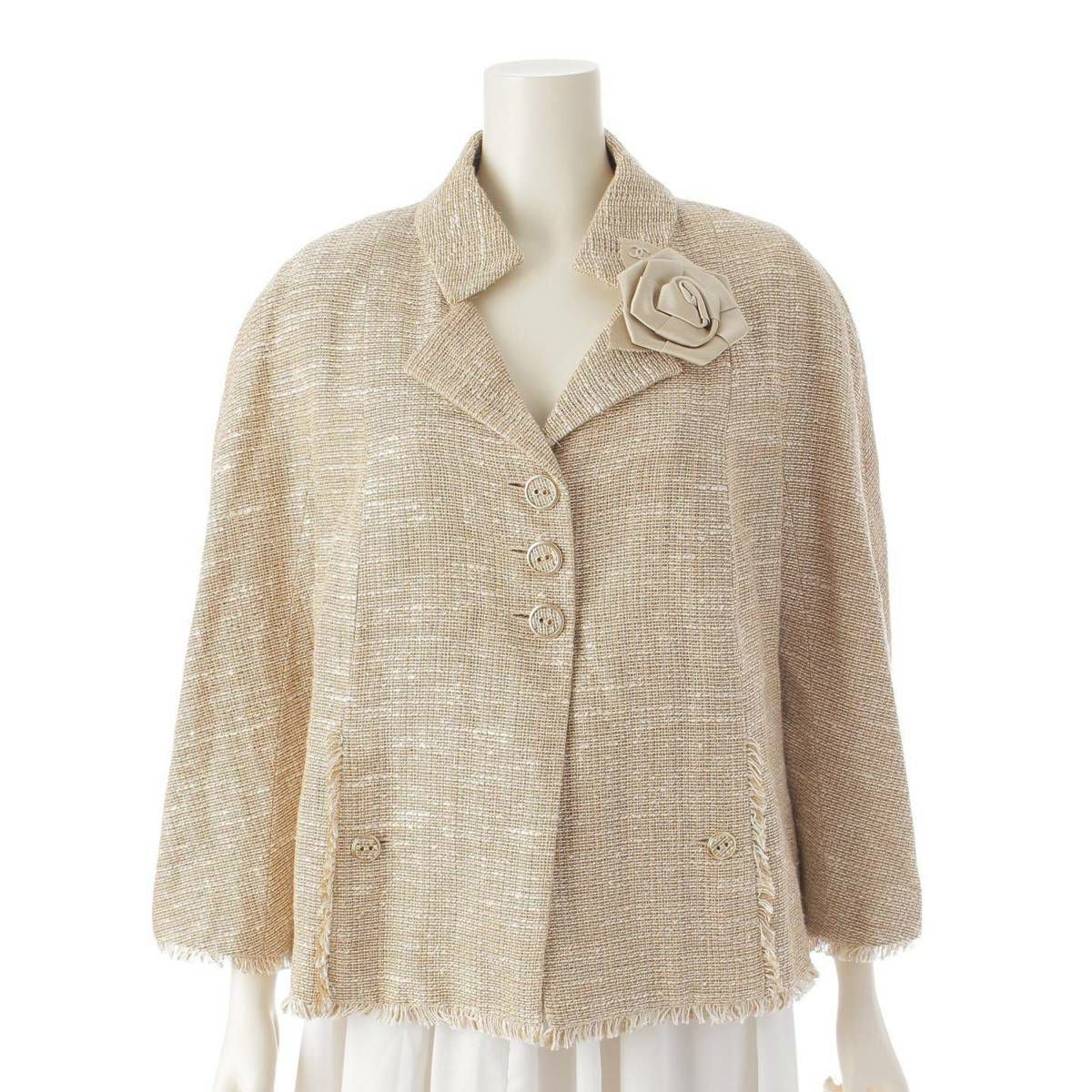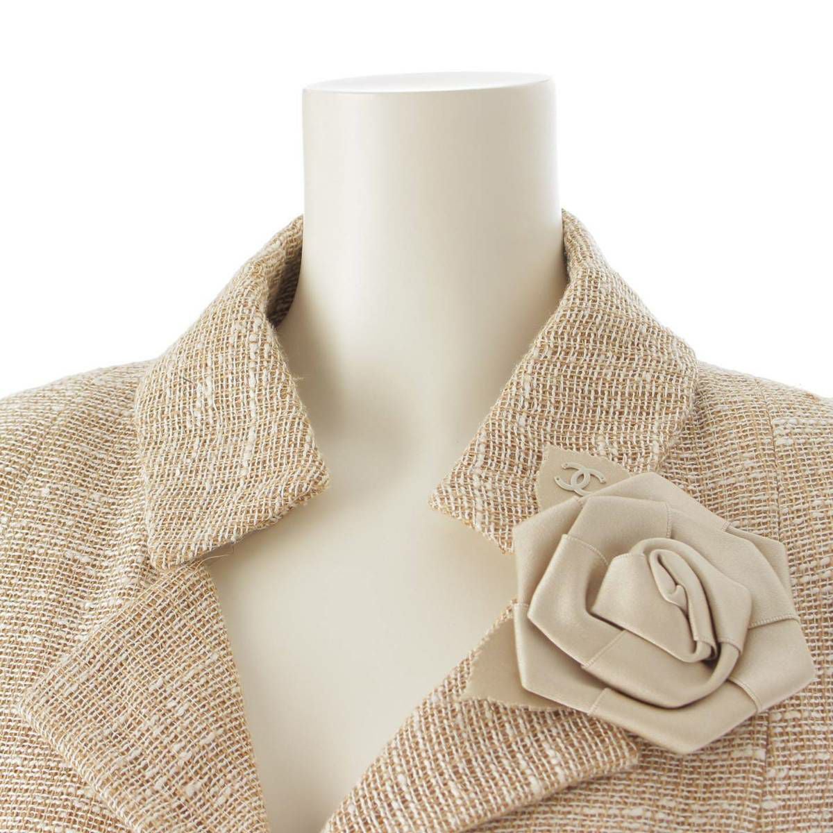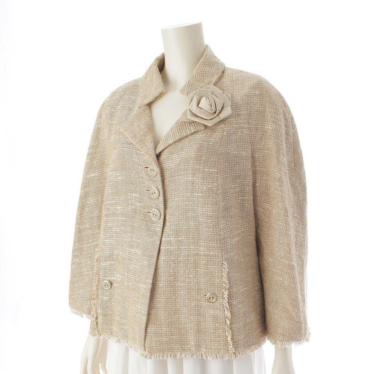 シャネル 08P カメリアブローチ付き リネン×シルク ジャケット P32818 ベージュ 48