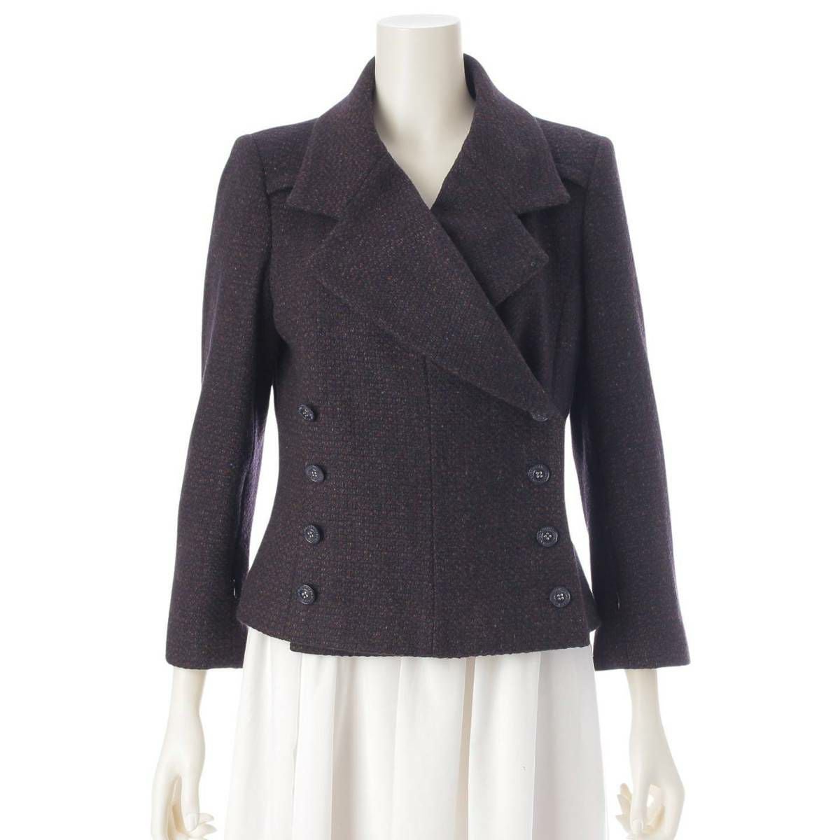 シャネル 02A ツイード カシミヤ ダブル ジャケット P20282 ブラウン 40